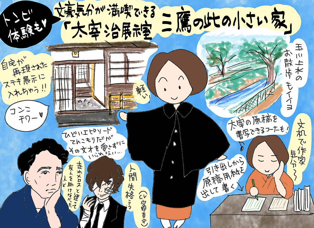 また三鷹駅からバスに乗れば、太宰の墓碑のある禅林寺にもすぐ。歩いても20分程度なのでよいお散歩になります。ちょっとでも太宰に憧れたことがあるかつての文学少年少女もしくは人気アニメ『文豪ストレイドッグス』好きの方でまだ未訪の方は、聖地・三鷹を一度訪れてみてはいかがでしょうか。禅林寺には森鴎外のお墓もありますよ。