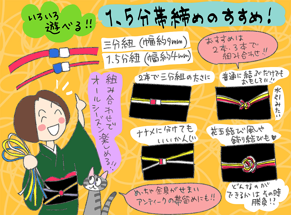 私が他装を習った頃には聞いたことがない結び方なのですが、着付師さんのブログやYoutubeに結び方の解説がありました。本結びと上下逆に結んでいくので、最初は???となりましたが、覚えてしまえば簡単です。
