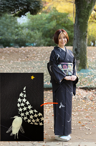 私、11月生まれ蠍座の女なんですが、今年は11月生まれの友達と集って美味しいものを食べて自分たちで自分たちの誕生日をお祝いしよう!!という会に参加しました。 素敵なワインバーの個室で7名で乾杯! 京都から来てくれたお友達もいて近況報告から時勢ネタまで気の置けない仲間トークで盛り上がりました。 せっかくだから、自分なりのオシャレをしよう!と思って着物コーディネートを考えていて、10年以上前にあつらえたのに着ていない付下げのことを思い出しました。 黒地に流れ星と星が集まって月の形になっている星の模様で、裾に目つきのいい感じの鷺がいます。「星」モチーフが気に入って、子供の名前に入っている音の「月」があるのとで「わ~!」って盛り上がって購入したのですが……。 柄はカジュアルめなんだけど、正絹で黒地なのでカジュアルに振り切れてなくて、でもフォーマルな場所にはちょっとなあ‥‥という中途半端な着物で、いわゆる「ちょっとしたパーティ」向けなんだと思います。 でも「ちょっとしたパーティ」に出席する機会って、私の人生にはなかったんですよね……。というわけで、まさに箪笥の肥やしになっていたものでした。いつも、出しては仕舞い、出しては仕舞いしていましたが、そうだ、この機会に着ようではないか!としつけ糸をとりました。 今、きもの雑誌『月刊アレコレ』に隔月で連載中の「きもの事典カルタ」という読み物としてもたのしめて役立つきもの用語集のページのイラストを担当させていただいているのですが、ちょうどアレコレの撮影が昭和な家スタジオ近くで行われていたので、お邪魔してついで撮影してもらいました。もちろんカメラマンは渡部瑞穂ちゃんです。紅葉がとっても綺麗でした~。 帯揚げは招き猫なんですが、顔だけ結び目に出してみました! 自分だけが楽しいシリーズ(笑)です。 そして、夜はワインバーの素敵な個室に。4人が着物でした。皆様それぞれとっても素敵なコーディネートで眼福~。美味しいお料理とともに、笑顔はじける楽しい嬉しい会でした。それぞれ、仕事に趣味にと素晴らしい活躍をしている友達の話を聞きつつ、お仲間に入れてもらえるのも自分が頑張ってるご褒美だな~と思ったり。 直前でインフルエンザで参加できなくなった友達もいて、健康も大事だとしみじみ。万象繰り合わせて集まれることもありがたく、来年もまたぜひみんなで揃いましょう!と解散しました。 そんなこんなで無事今年の誕生日も過ぎ、会いたい人には会って、着たいものも着る! そんな1年にしたいなあと思っております。