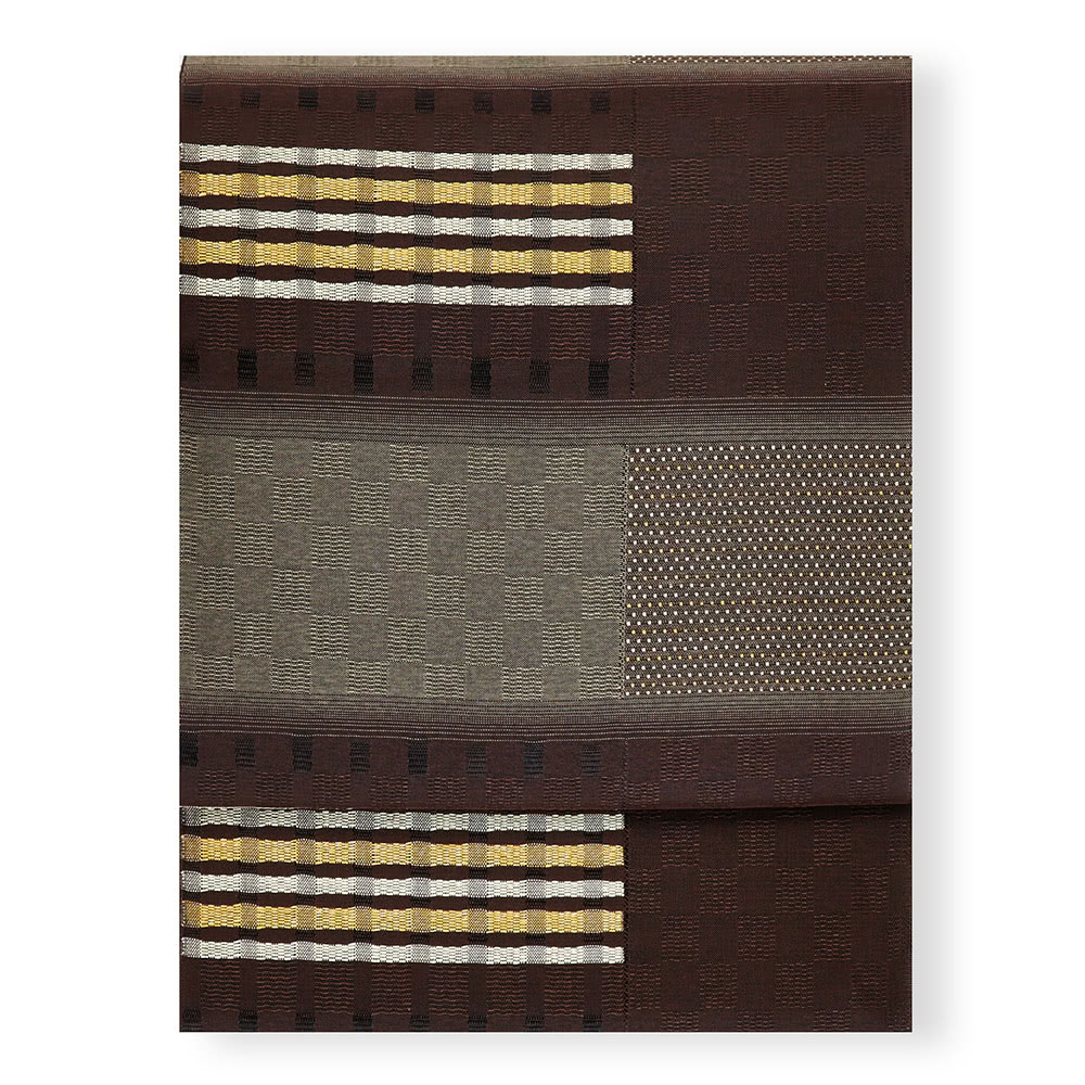 これからの季節に、生地の風合いも色合いも黄八丈がピッタリだと思い、同系の市松帯を合わせてコーディネートしました。本来でしたらシンプルな帯を持ってくると思うのですが、敢えてより縦ラインが意識できるような組み合わせにしてみました。小物も秋っぽくこっくりした色で、使い回しも効きそうだなと思います!