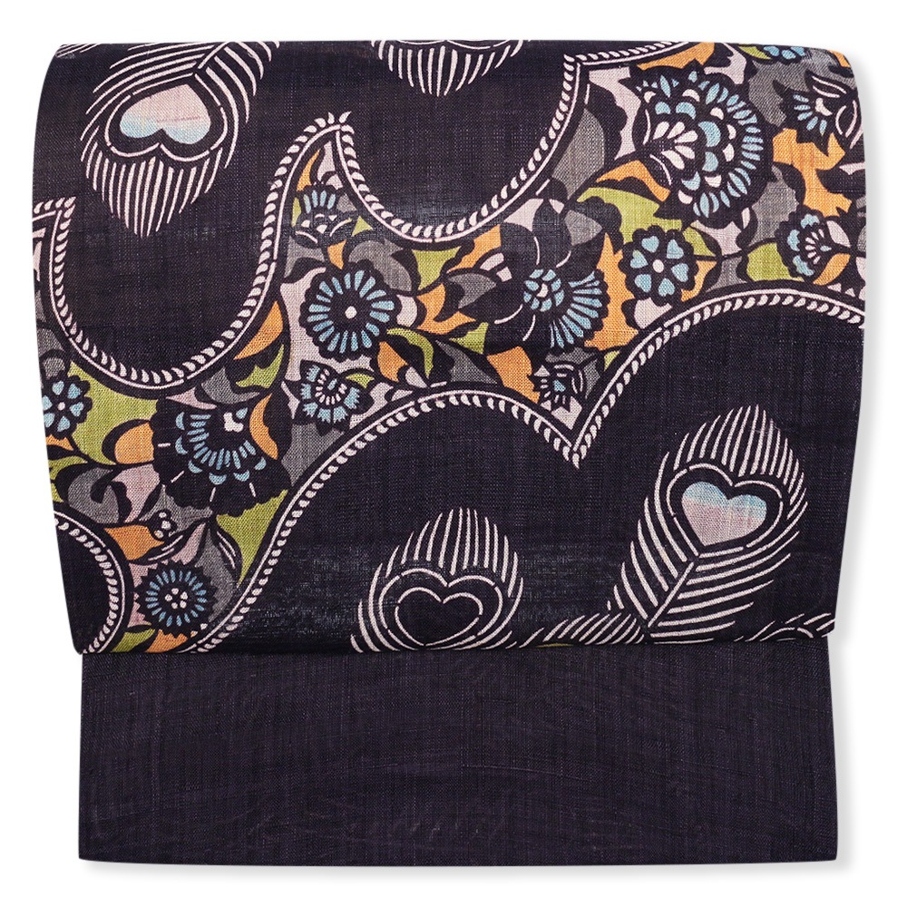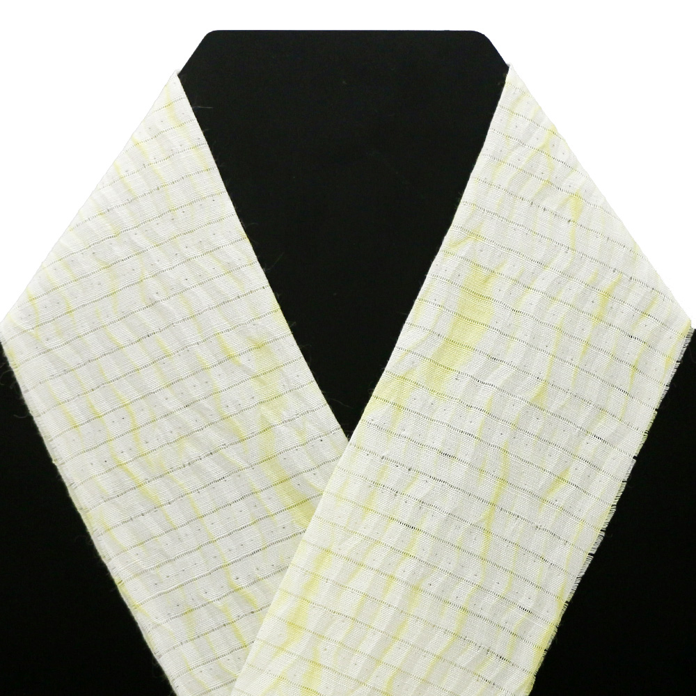 すっきりした小千谷縮に個性的な帯を合わせました。暑い夏も元気よく!半衿も麻で涼しくまとめました。