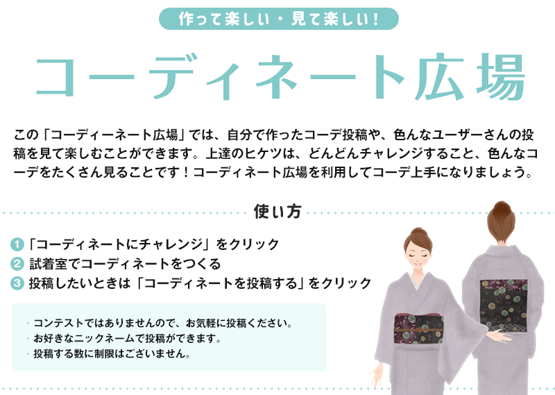 この「コーディネート広場」では、自分で作ったコーデ投稿や、いろんなユーザーさんの投稿を見て楽しむことができます。上達のヒケツは、どんどんチャレンジすること、色んなコーデをたくさん見ることです!コーディネート広場を利用してコーデ上手になりましょう。