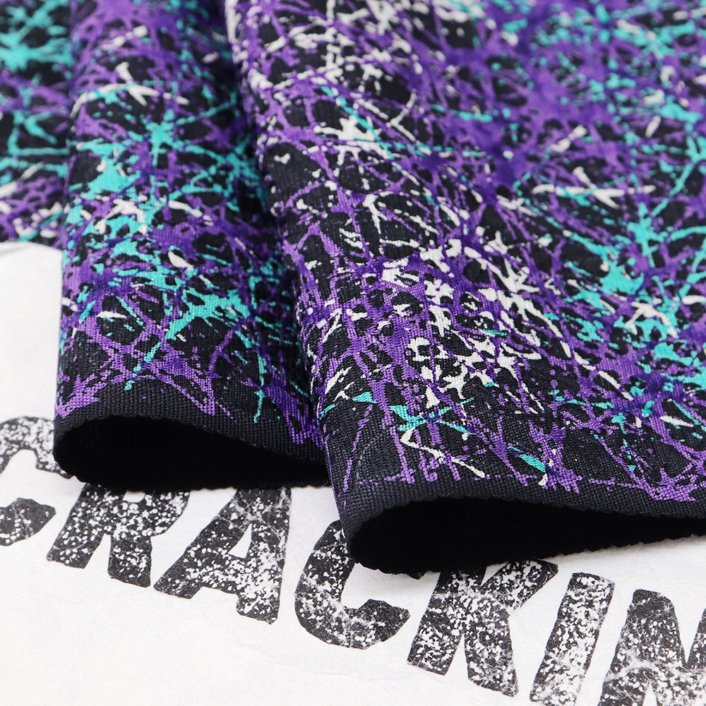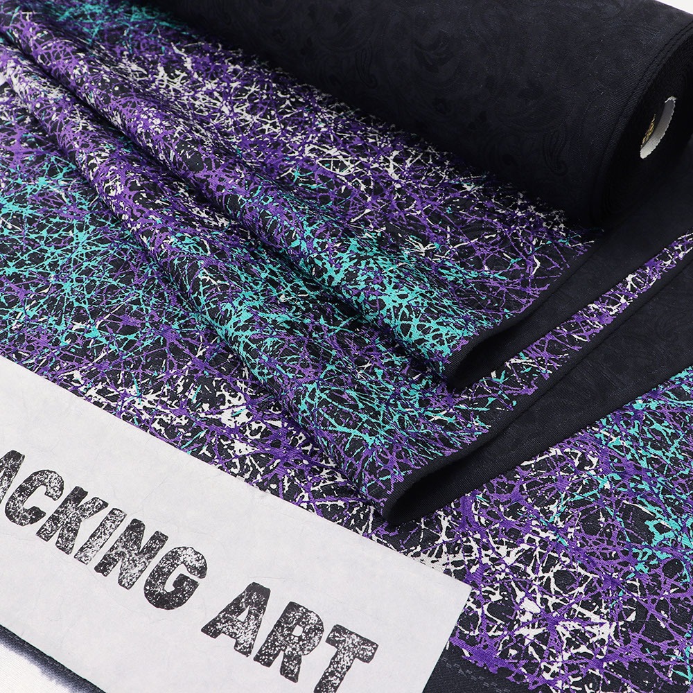 ペイズリーの地紋が入った丹後ちりめん生地に、ひび割れのような柄付けをした小紋『CRACKING ART』。