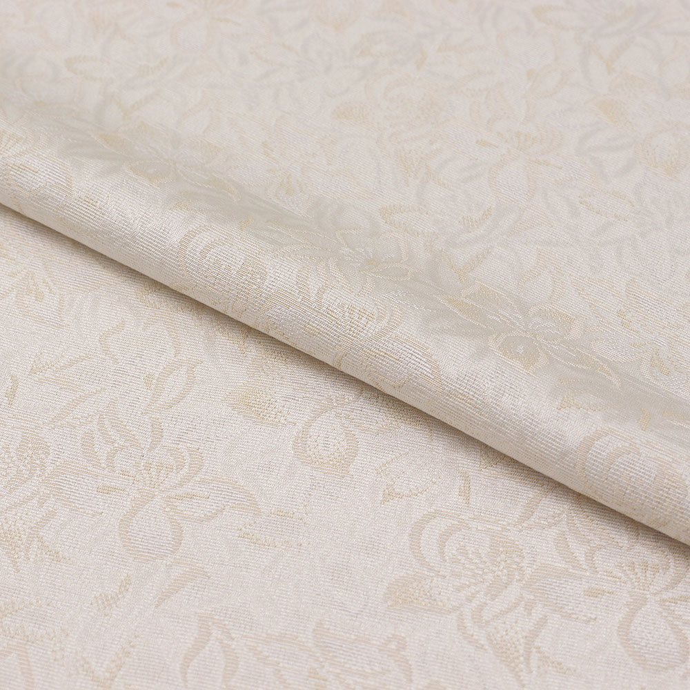 薄橙色に、洋花模様を三重織で織り出した御召。