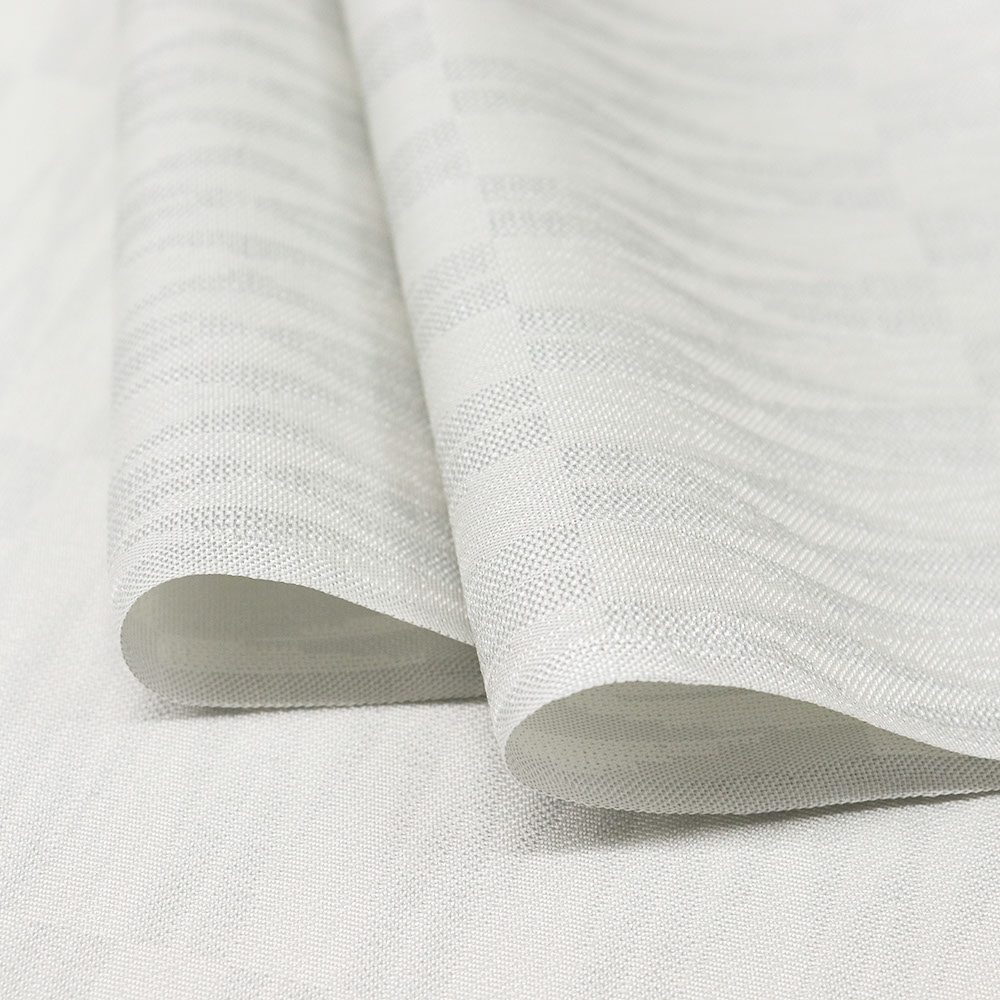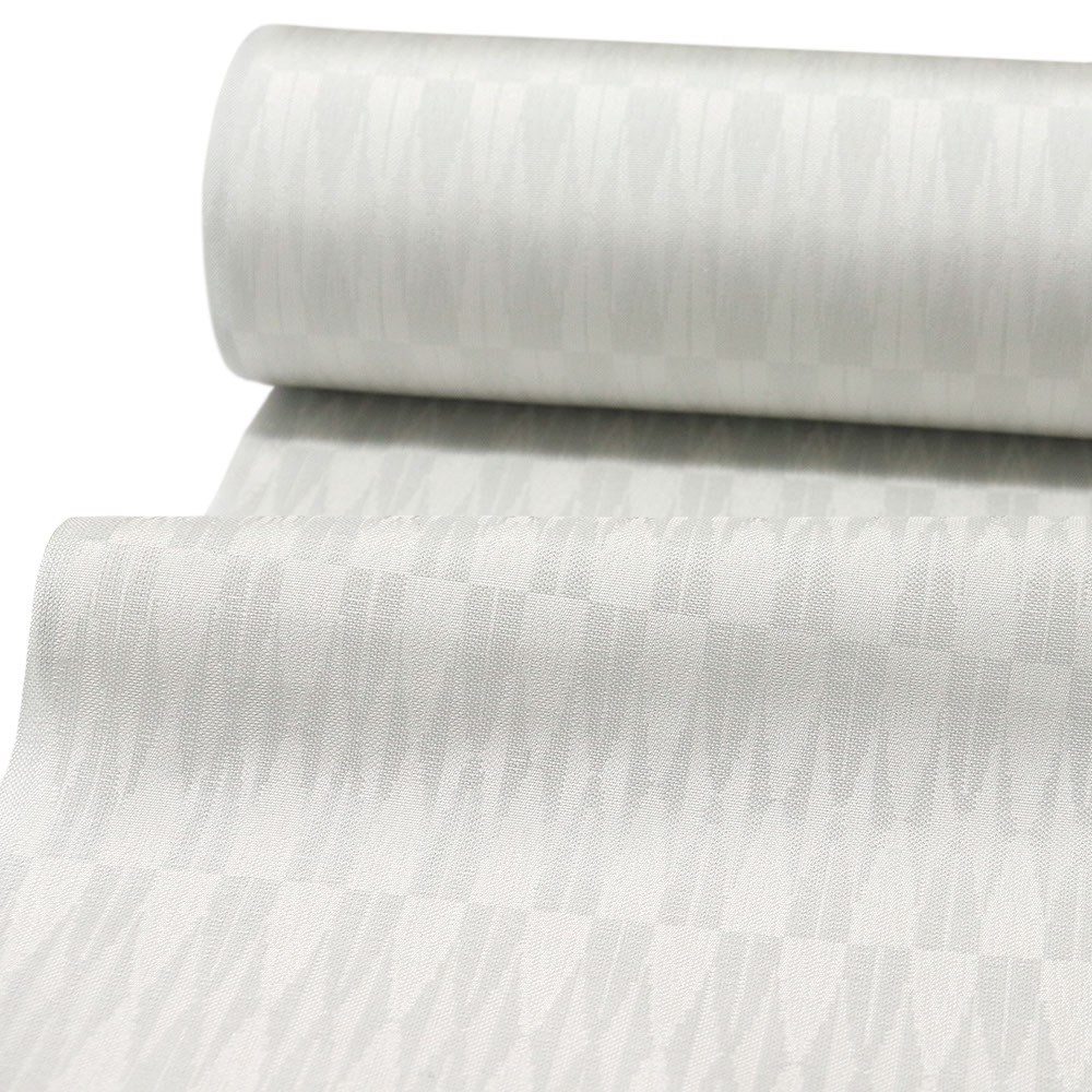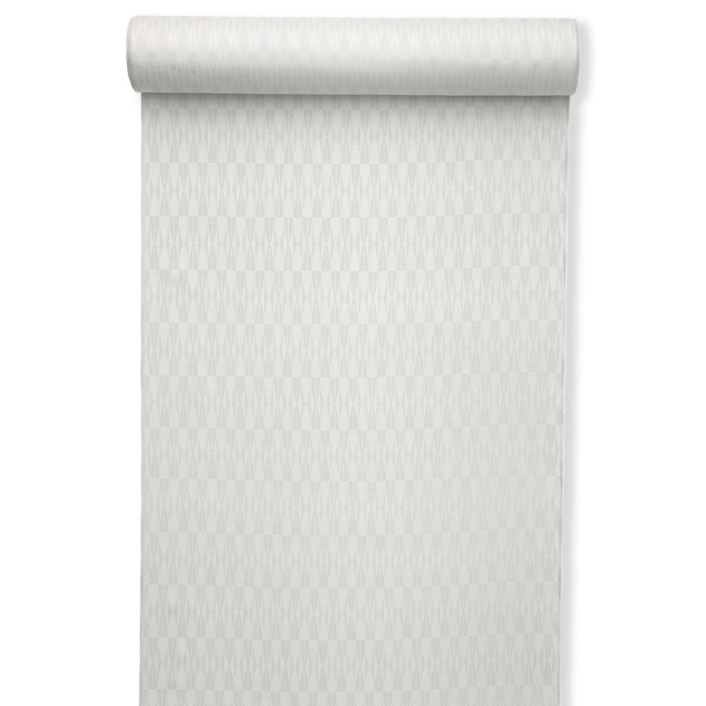 白灰色に織り出された幾何学模様が味わい深い御召。