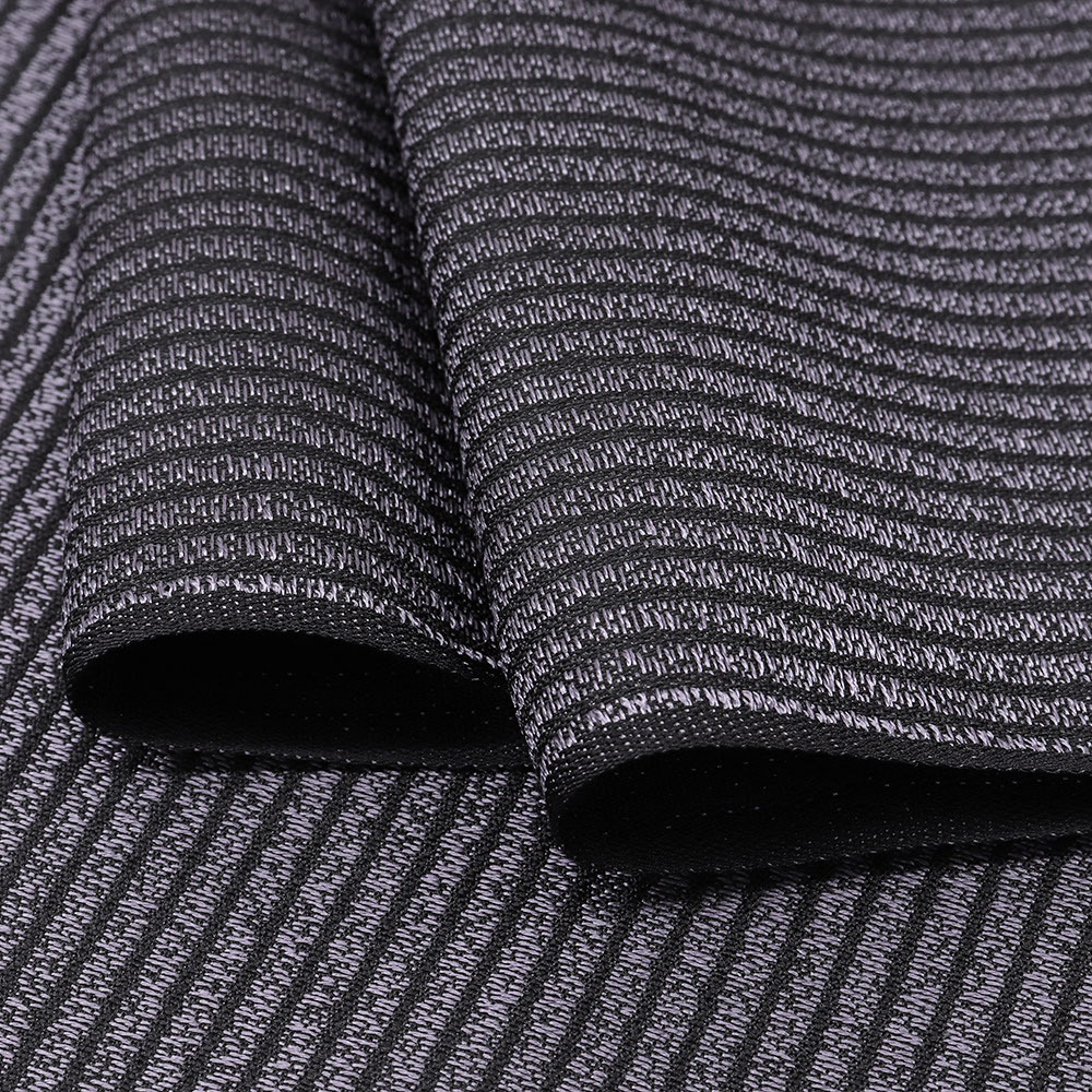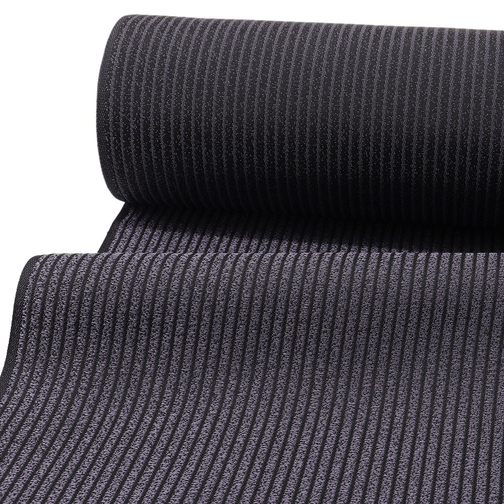 青色と黒で織り上げられた縞模様がシックな御召です。青の縞部分は青色交じりに織られており、定番の縞模様でありながら表情豊かな印象な印象が感じられます。