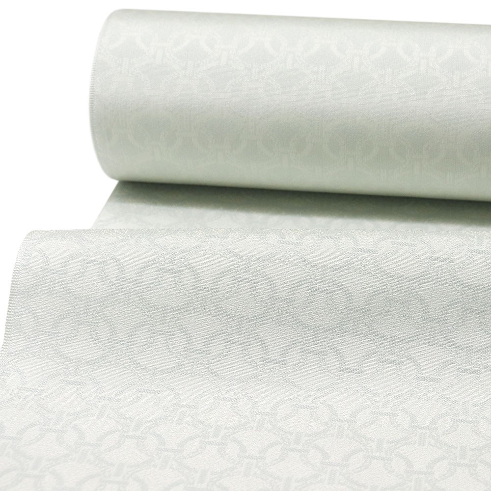 淡水色に輪つなぎが織り出された御召。
