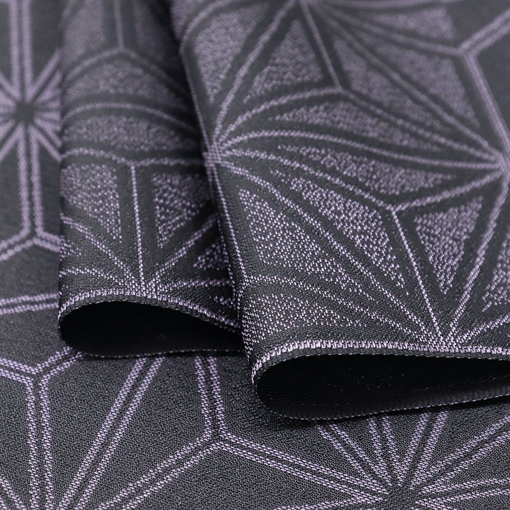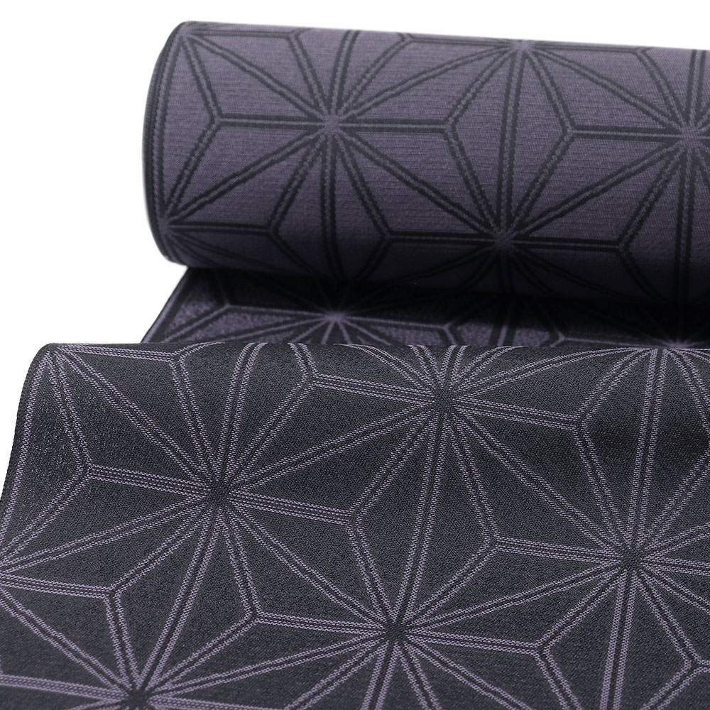 黒紫色に麻の葉模様が織り出された御召。