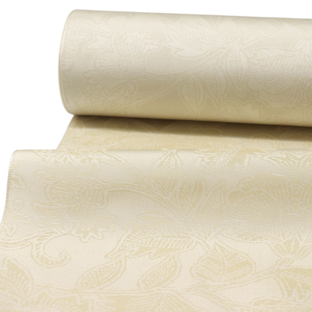 鳥の子色にリーフ模様が織り出された御召。