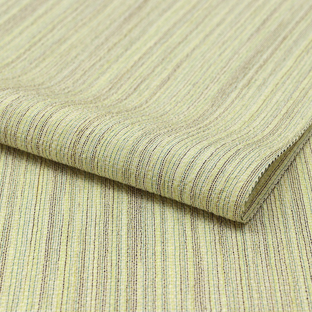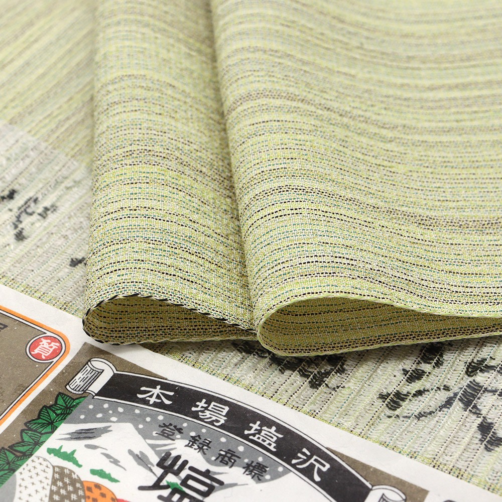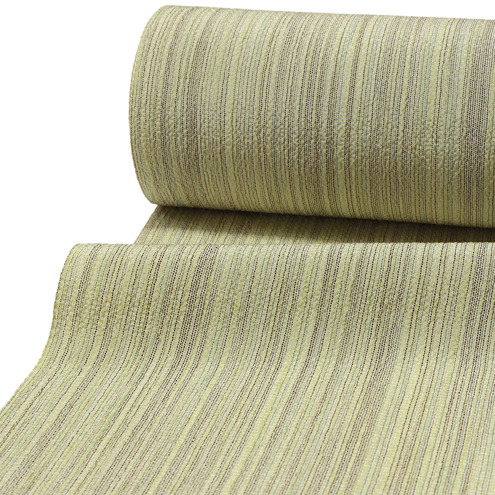 落ち着いた若菜色の地合にシンプルな乱縞柄は、スマートな着姿へ引き立ててくれそうです。