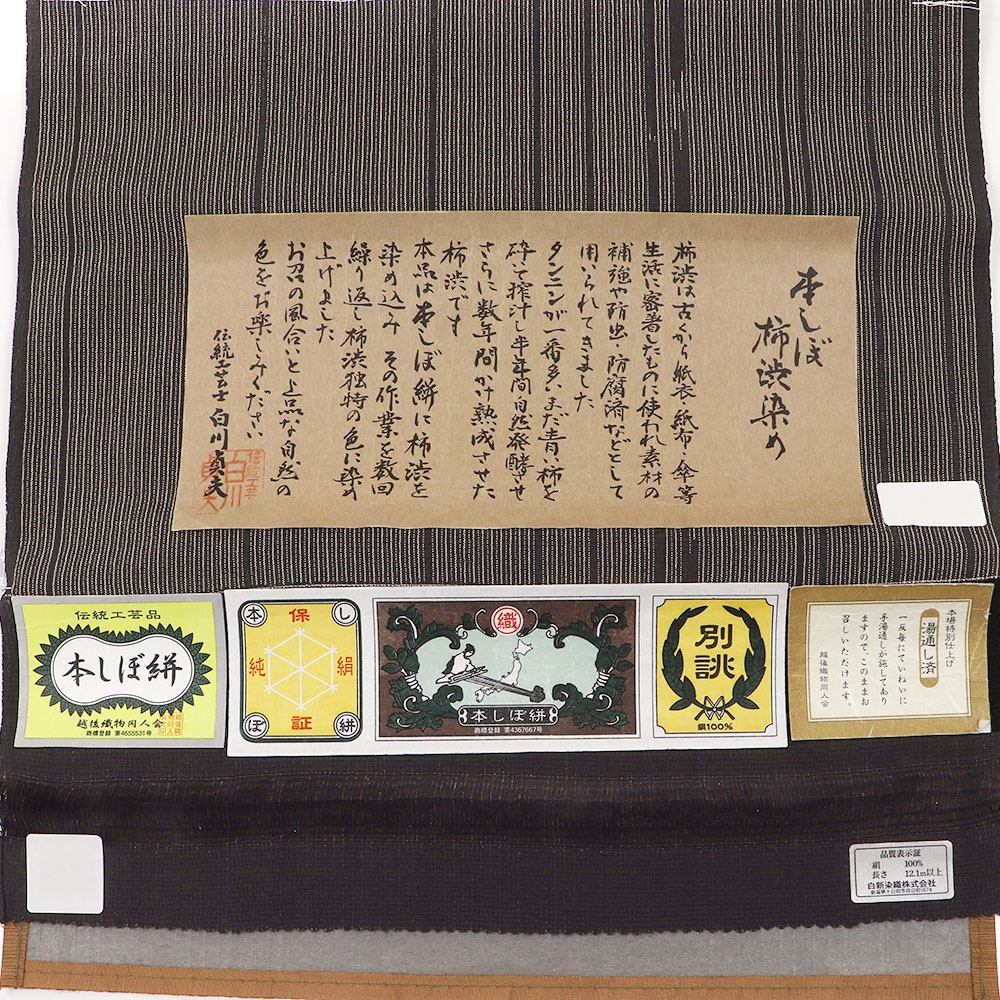 【白新染織】謹製、伝統工芸士白川柿渋染め十日町本しぼ絣。