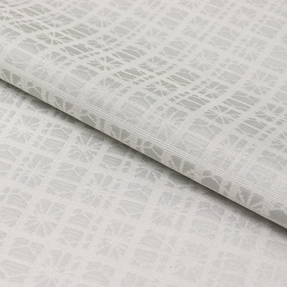 灰色に格子と麻の葉を重ね合わせた模様が織り出された御召。