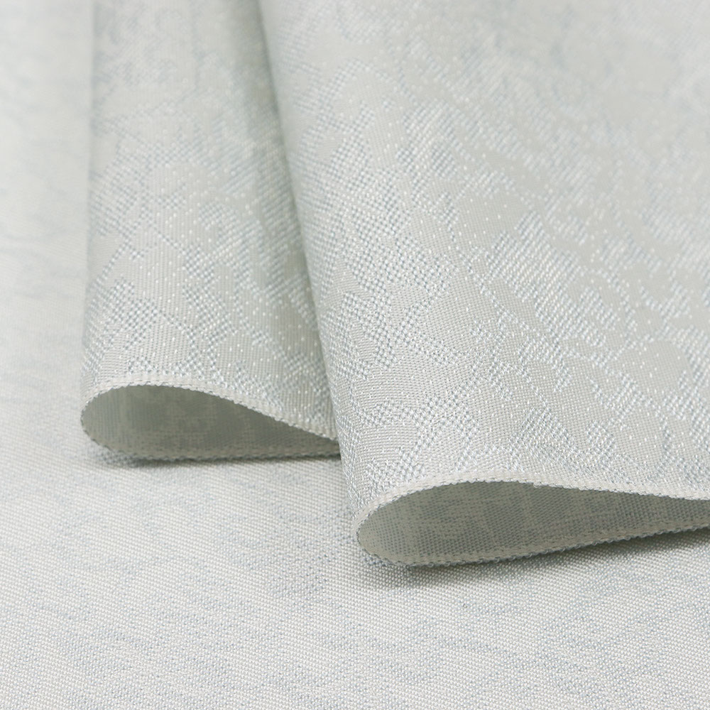薄水色に細かく葡萄唐草模様が織り出された御召。