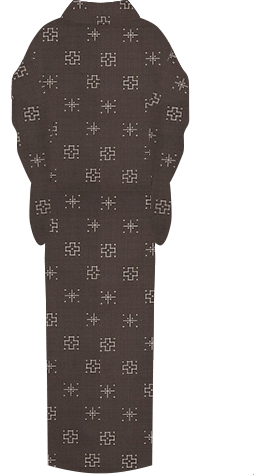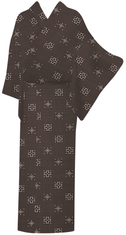 車輪梅と泥染めで染め出された味わい深いこげ茶色が、趣深い着姿へと導いてれる一本。等間隔で並んだ緻密な十字絣は、職人の手作業を存分に感じられる仕上がりです。シンプルなデザインは、総柄帯から地空きの多い帯まで幅広く受け止めてくれ、カジュアルシーンではセンスが光る着姿に。