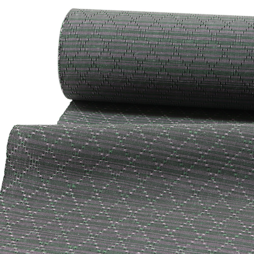 紬では難しいとされる紅花染めの糸を使用して織りなされた一枚です。落ち着いた深緑色はシンプルなワンカラーながら、紬地ならではの節もあいまってどこか優しい色合いに。織り出された格子柄がほどよい光沢を放ちます。