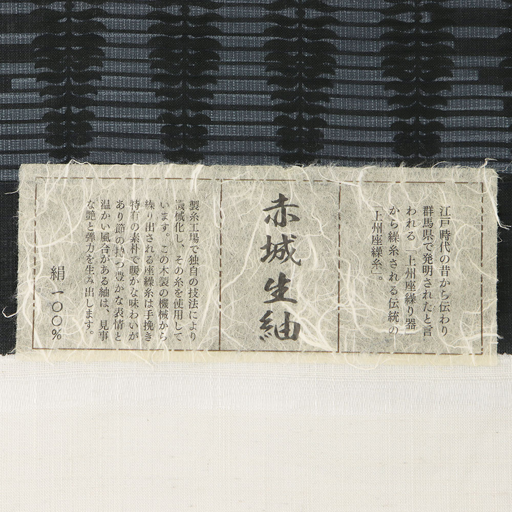 江戸時代に発明されたと言われる「上州座繰り器」を使用した座繰糸で織り上げられた一本です。生紬の名の通り、セリシンを完全に落とさず、糸本来の風合いをそのまま活かした素朴な仕上がりが特徴。コシのあるサラリとした生地感が、着姿に奥行きや陰影を与えてくれます。