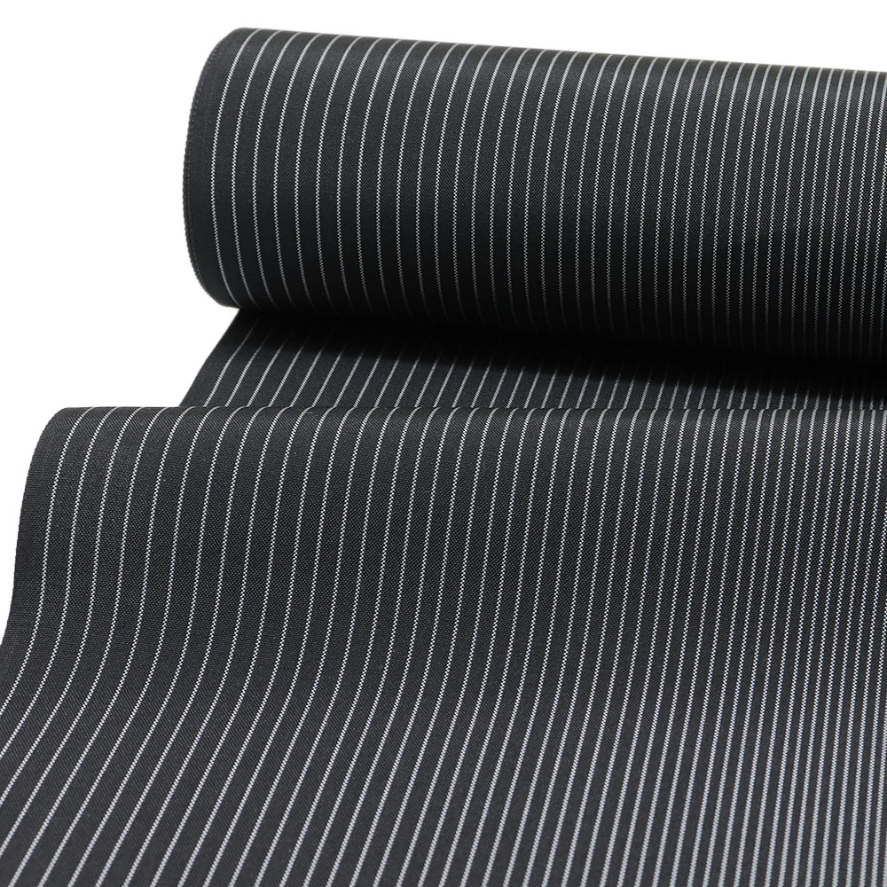 伝統工芸士・根津誠一氏が手掛けたこちらはグレーの滝縞と、黄色の一本縞が黒地に映えるモダンな仕上がり。緻密な縞模様はぼかしに近い感覚で、そのシンプルさが帯を問わず幅広いコーディネートを可能にしてくれます。