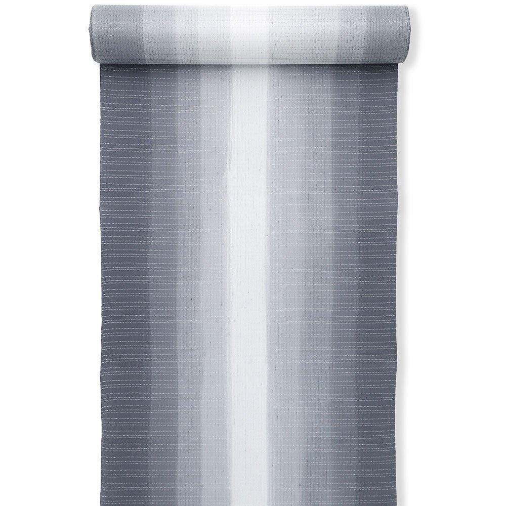 こちらの大島紬は、特殊技法を用いて紡がれたダイヤモンド銀糸を地に織り込み、繊細な輝きをお楽しみいただける一枚。水彩画のようなふんわりとした縞模様が、銀糸の輝きとあいまってモダンな雰囲気になっています。