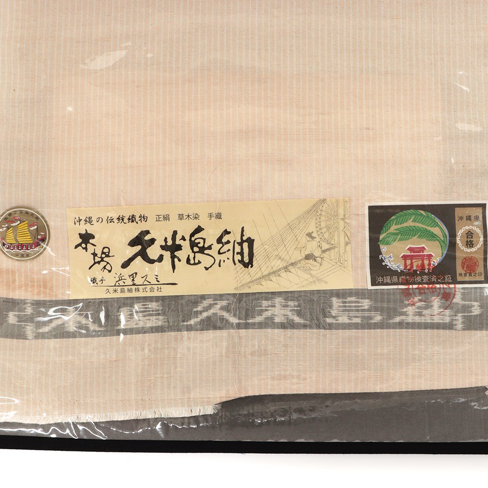 沖縄県織物検査済の伝統証紙が貼られた本場久米島紬。