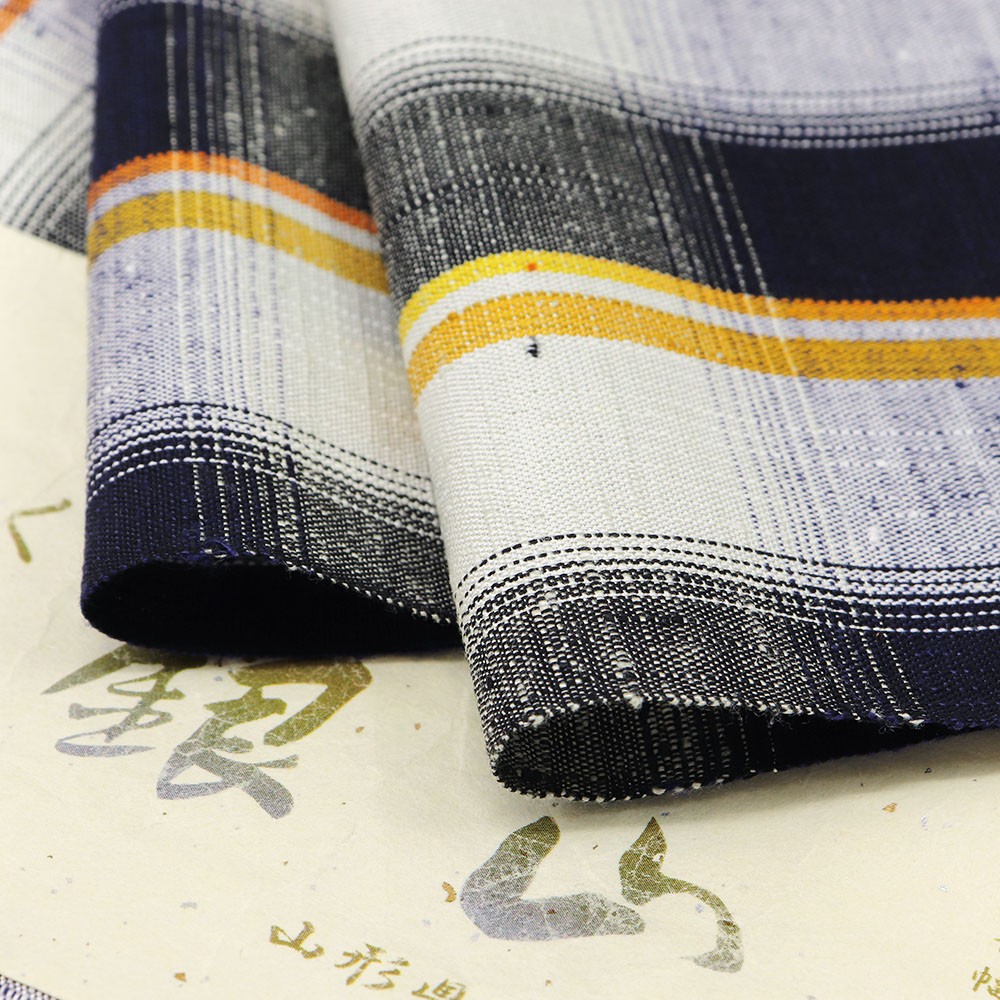 紅花染めを得意とする山形・米沢織を代表する老舗のひとつ【渡源織物】謹製の長井紬『銀山』。