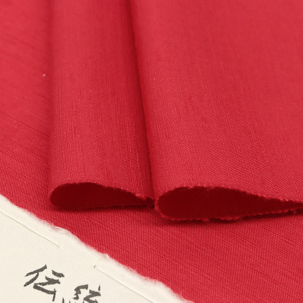 紬特有の節や太さといった「不均一さ」が赤一色の中にも濃淡を生みだし、目を楽しませてくれます。
