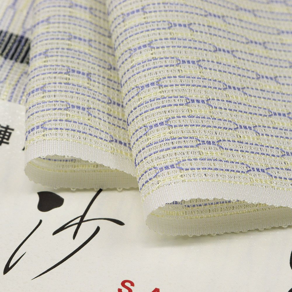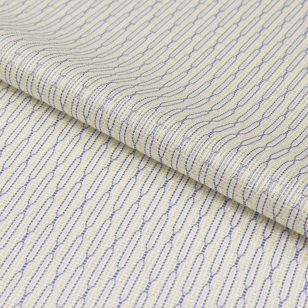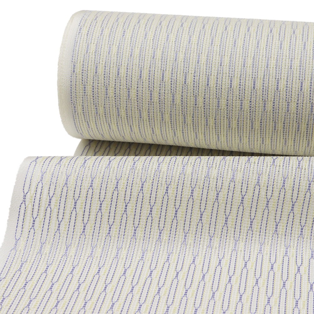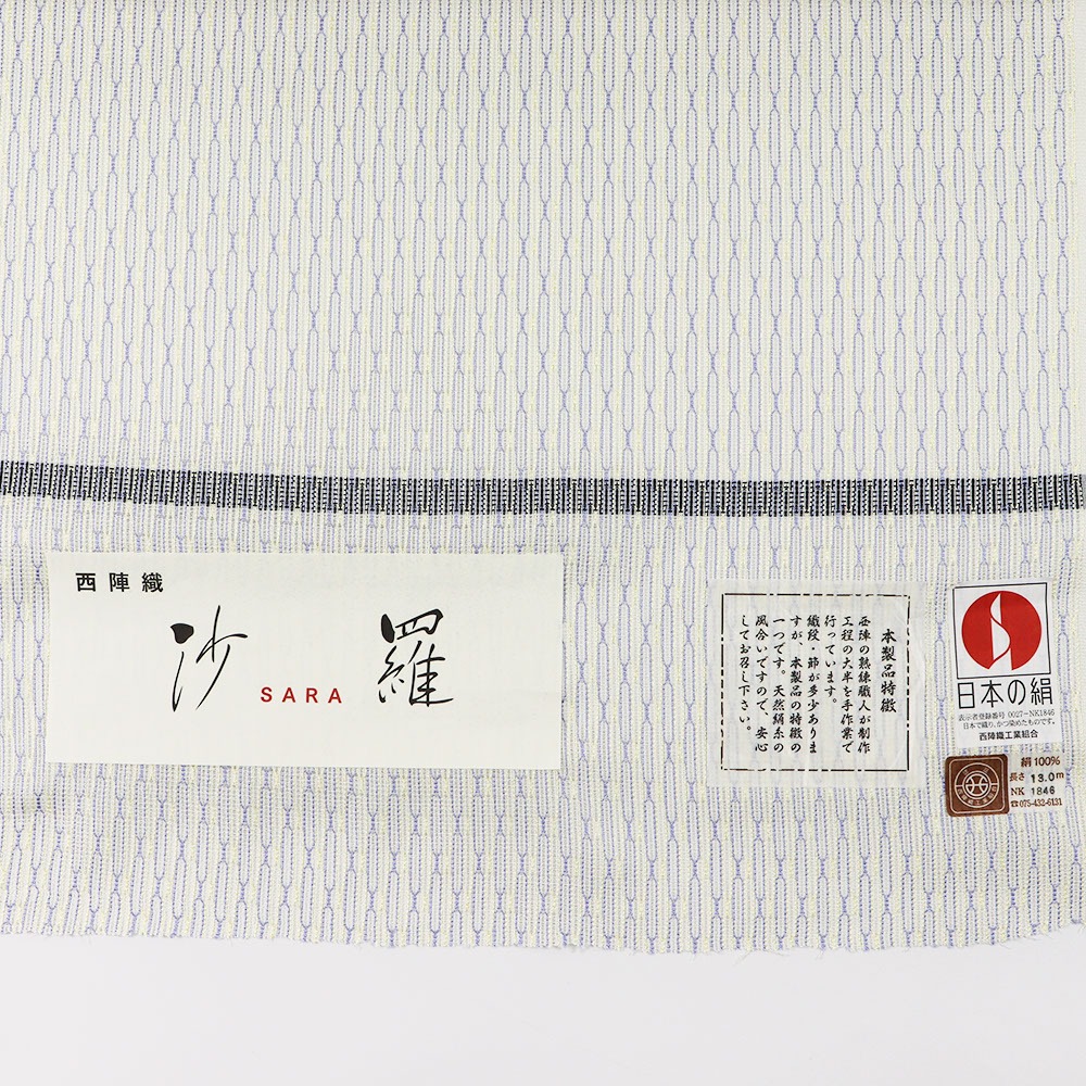 夏の定番である絽や紗よりも網目が大きく、軽やかな風合いが魅力の羅織。こちらは、水色と黄色の糸を組み合わせて繊細な縞模様を織り出しています。
