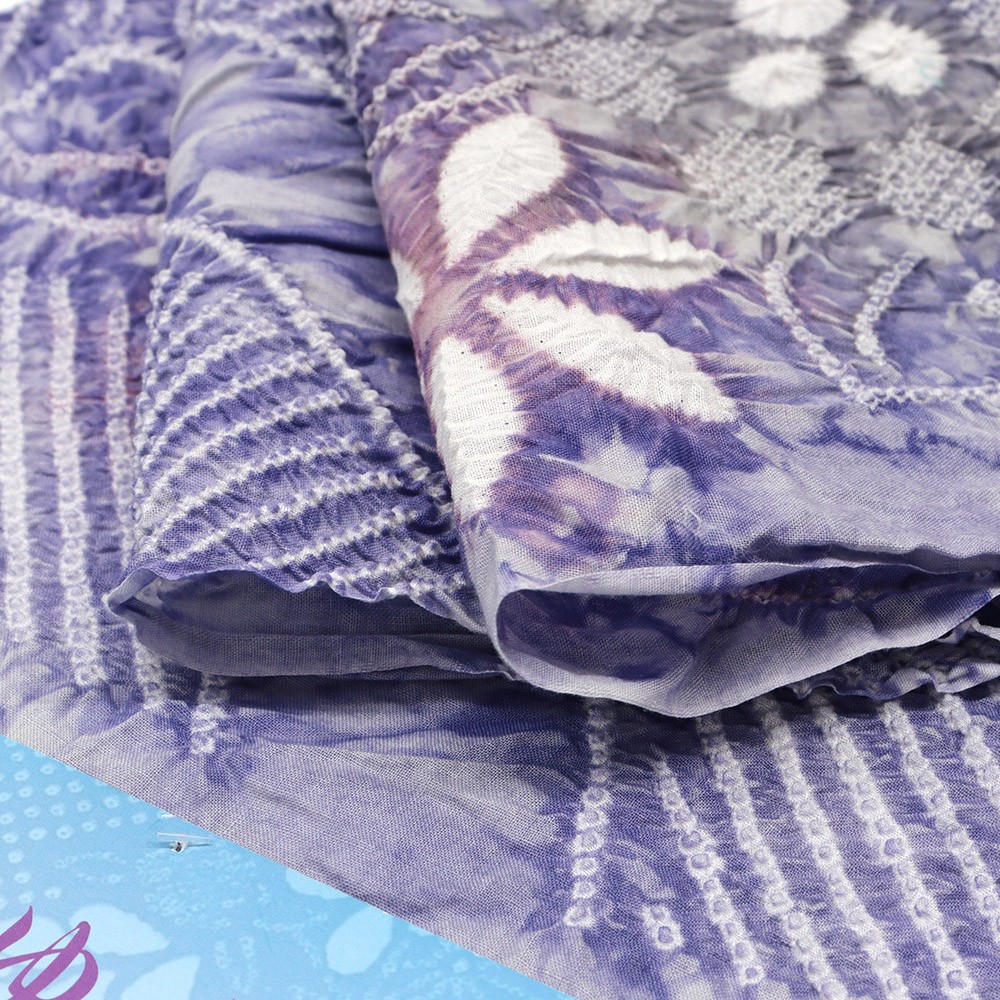 青藤色地に広がる絞り模様が、幻想的な仕上がりに。軽やかかつ、ふんわり柔らかな綿の風合いから、包まれるような着心地を体感いただけることでしょう。