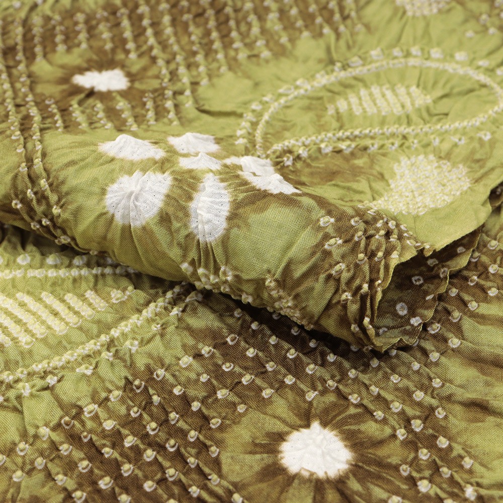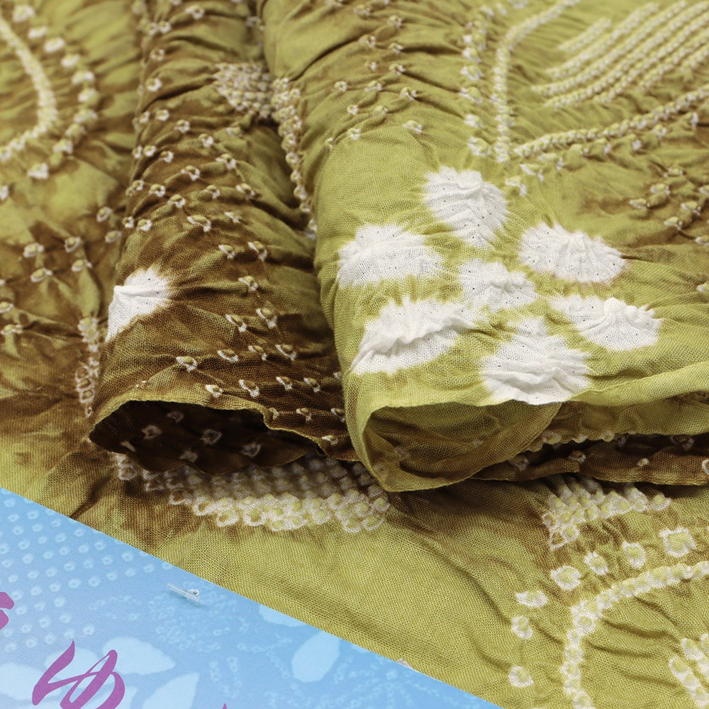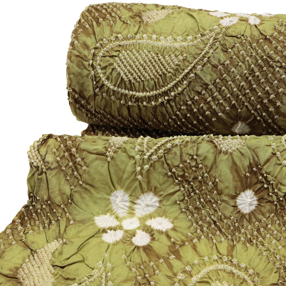 抹茶色地に広がる絞り模様がしっとりオトナな仕上がりに。軽やかかつ、ふんわり柔らかな綿の風合いから、包まれるような着心地を体感いただけることでしょう。