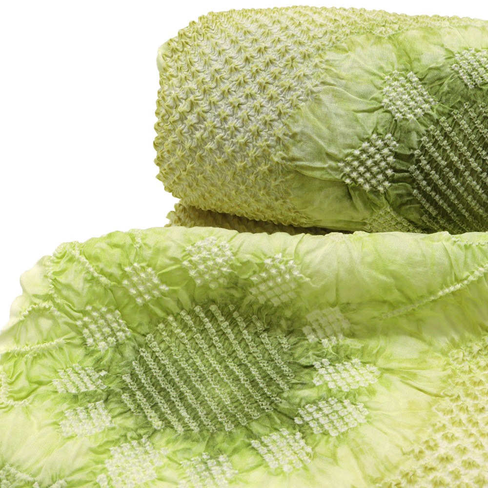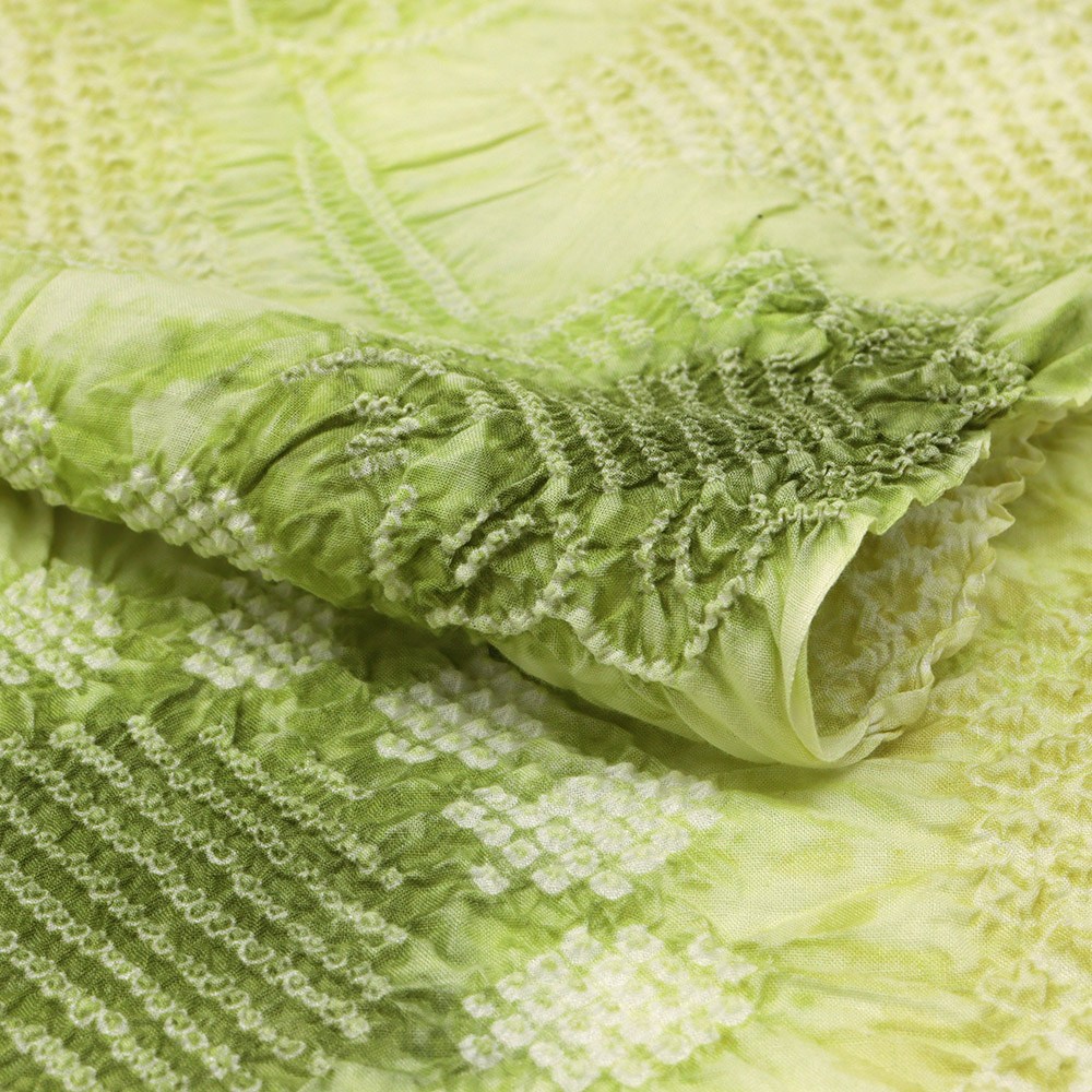明るい萌黄色地に広がる絞り模様が、大人カワイイ仕上がりに。軽やかかつ、ふんわり柔らかな綿の風合いから、包まれるような着心地を体感いただけることでしょう。