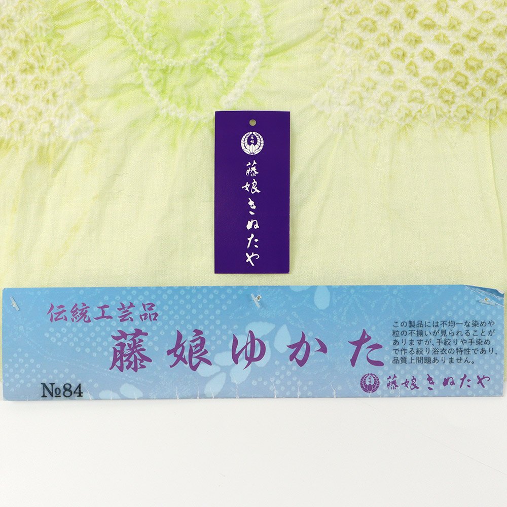 1947年に創業、精巧な絞りの技と雅趣に富んだ色彩が特徴的な【藤娘きぬたや】による総絞り浴衣。