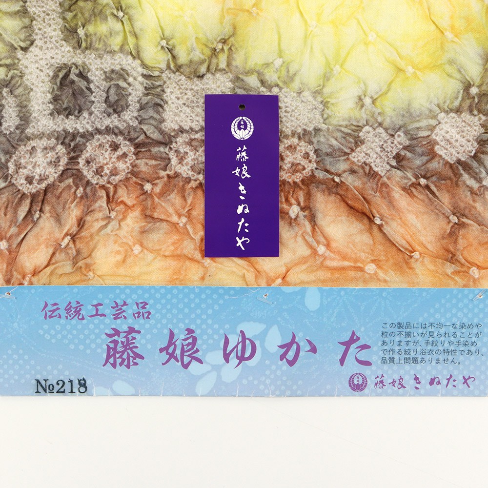 1947年に創業、精巧な絞りの技と雅趣に富んだ色彩が特徴的な【藤娘きぬたや】による総絞り浴衣。
