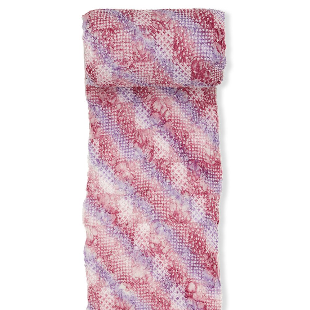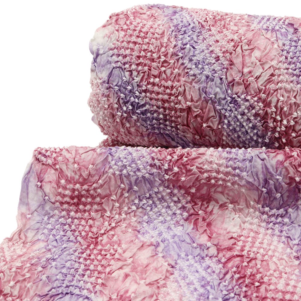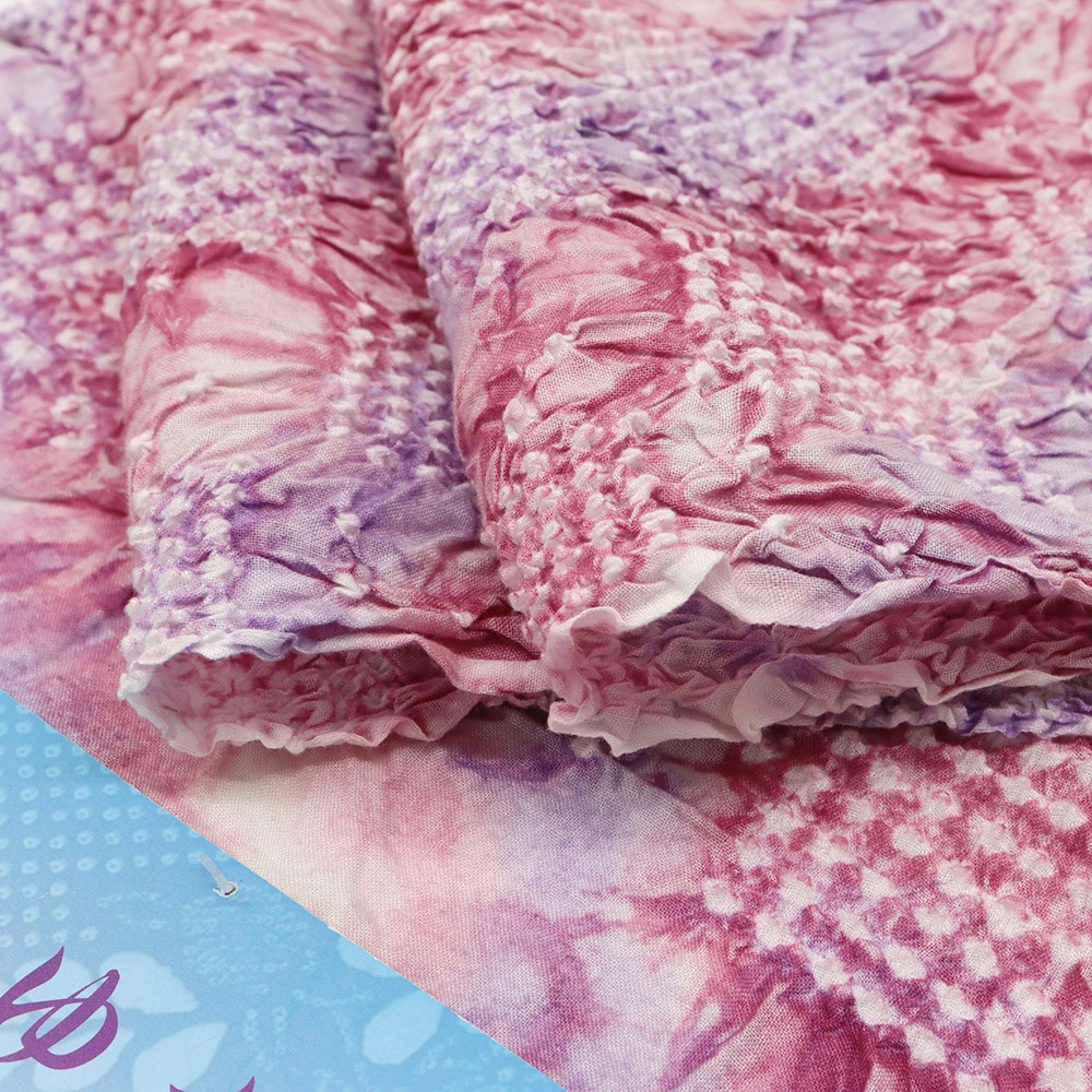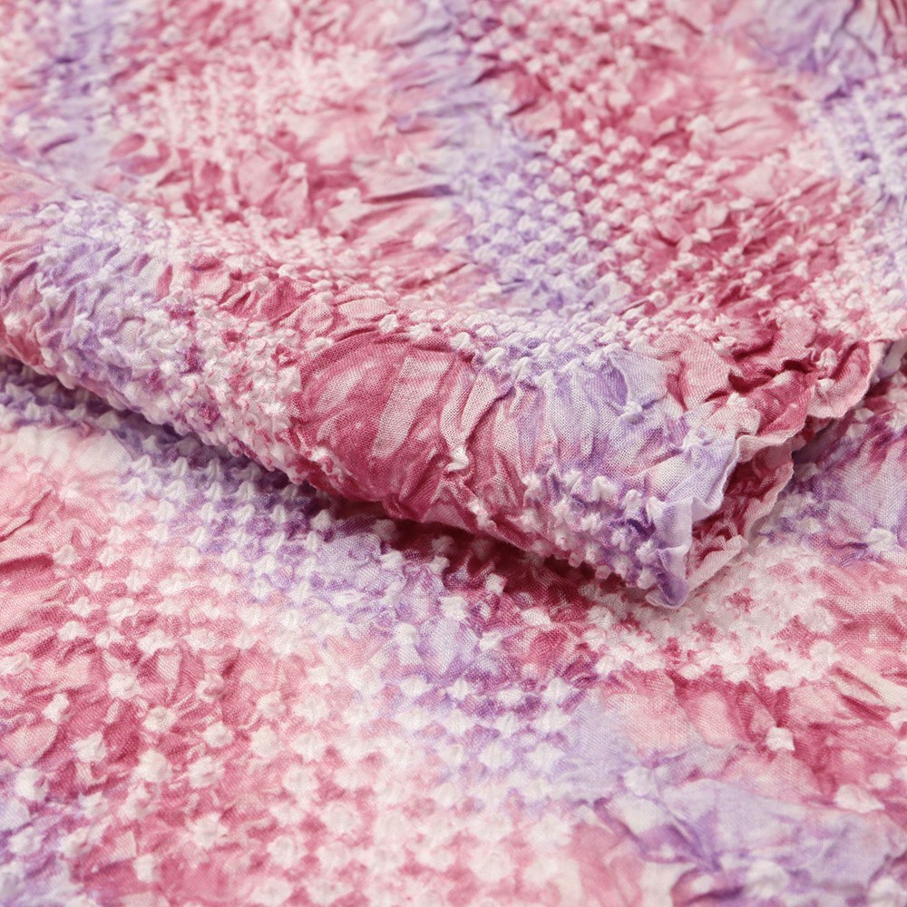 斜めぼかし地に広がる絞り模様が、幻想的な仕上がりに。軽やかかつ、ふんわり柔らかな綿の風合いから、包まれるような着心地を体感いただけることでしょう。