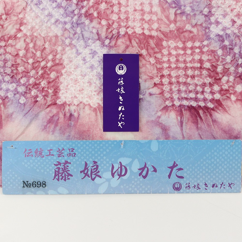 1947年に創業、精巧な絞りの技と雅趣に富んだ色彩が特徴的な【藤娘きぬたや】による総絞り浴衣。
