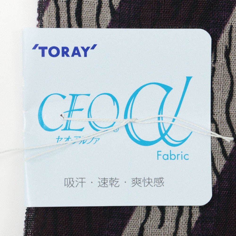 デザイン性もさることながら、夏に快適な機能性にもご注目◎セオαの清涼な素材感と、織りによる凹凸が相まって、肌へのペタつきを抑えたさわやかな着心地をサポートします。たっぷり楽しんだ後は自宅でお洗濯&ノーアイロンOKが嬉しいところ。