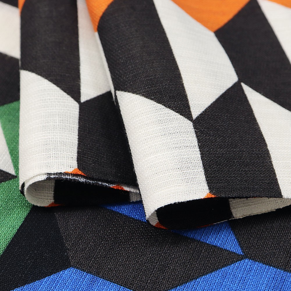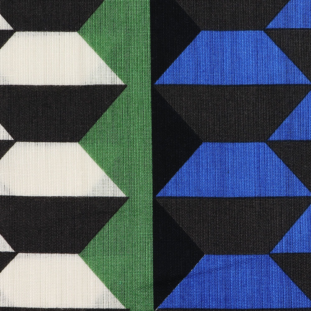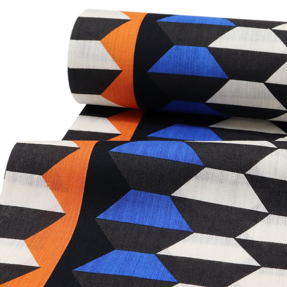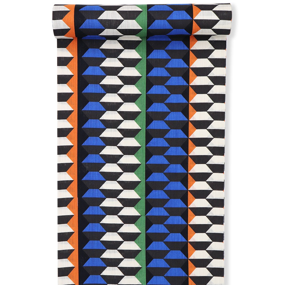 「アフリカの女王」と名付けられたこちらは、鮮やかな青、緑、オレンジの幾何模様に並ぶ一本。直線的で立体感のある柄行きが、トレンド感のあるハイセンスな着姿を演出してくれるでしょう。