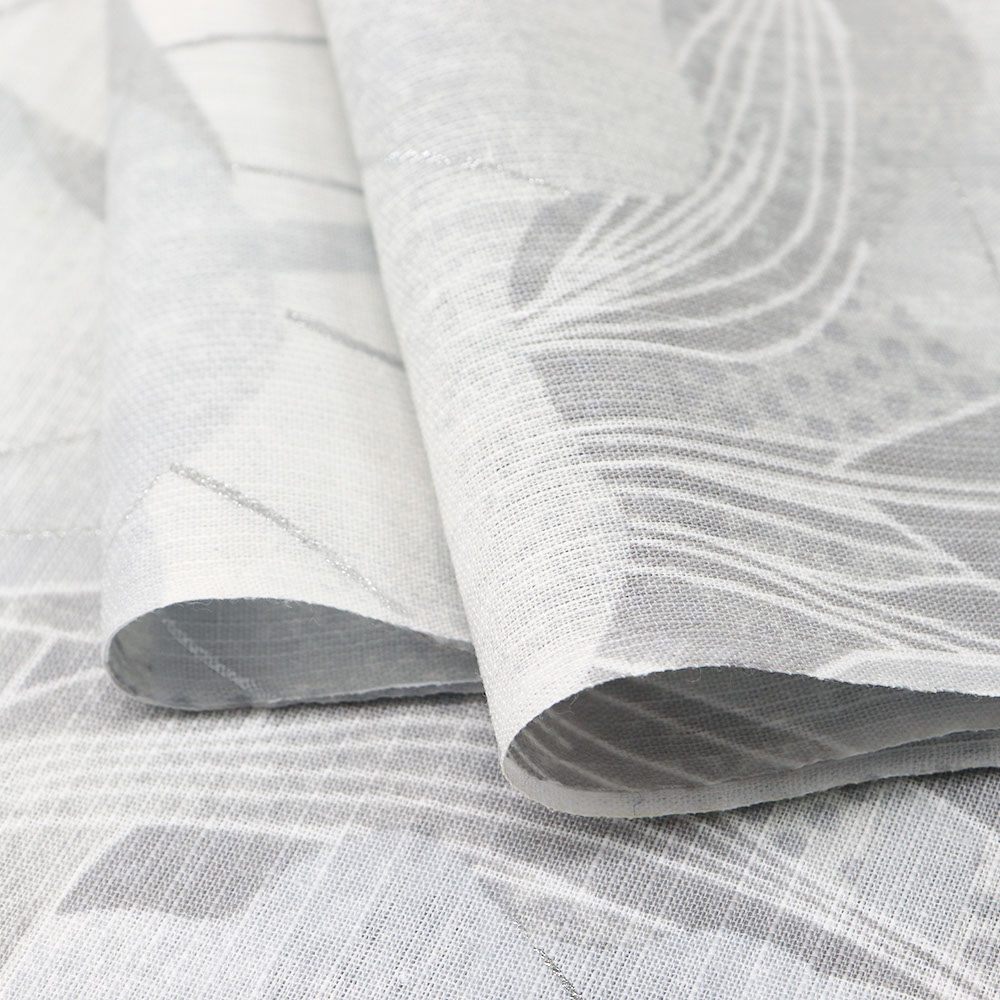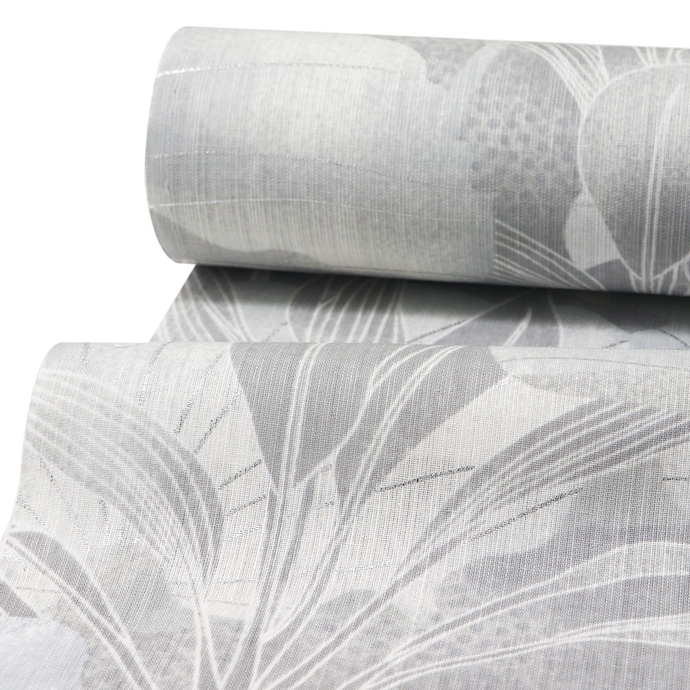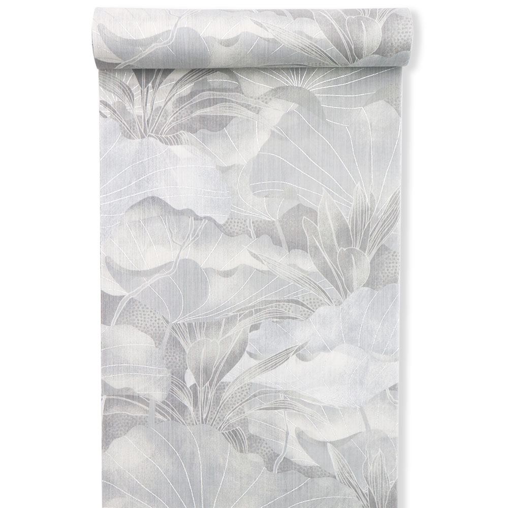 「蓮華抄」と名付けられたこちらは、白と黒で蓮華の葉を表現した一枚です。グレーベースの柄行きに、繊細な描線が映えるシャープなデザインに。型に嵌らない唯一無二な夏の着姿を演出してくれます。