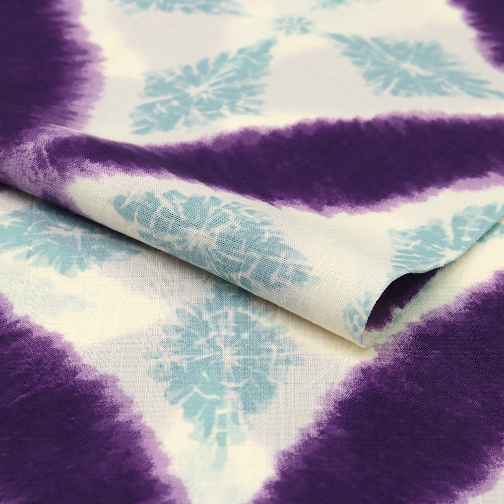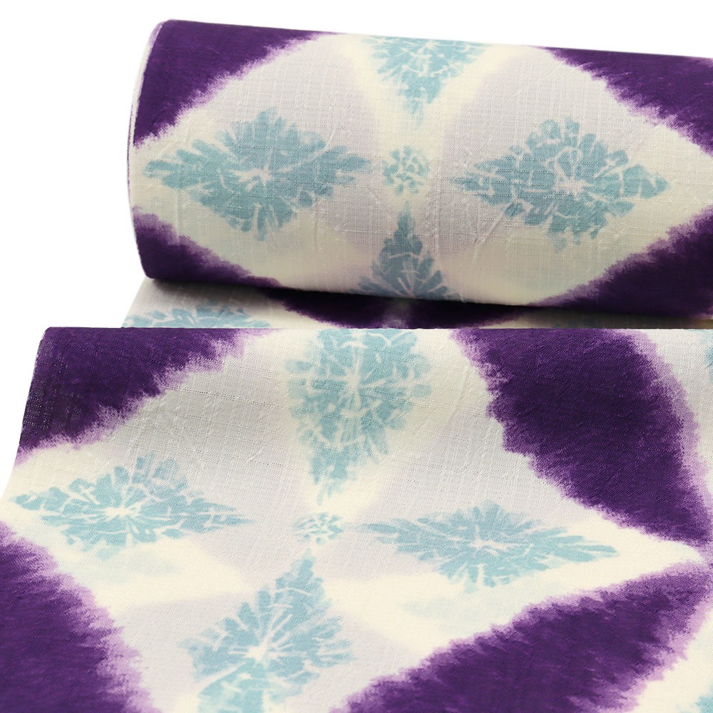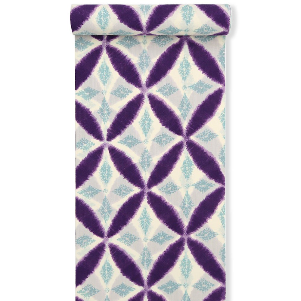 紅梅織りのような格子の織り目が味わい深い生地に、絞り風の七宝菱紋が広がる涼しげな一枚です。半巾帯を合わせてカジュアルに、名古屋帯を合わせればきちんと感を醸し出す夏着物に。現代の街並みに溶け込むワンピースのようなモダンさで、気軽に楽しんでいただきたい着物です。