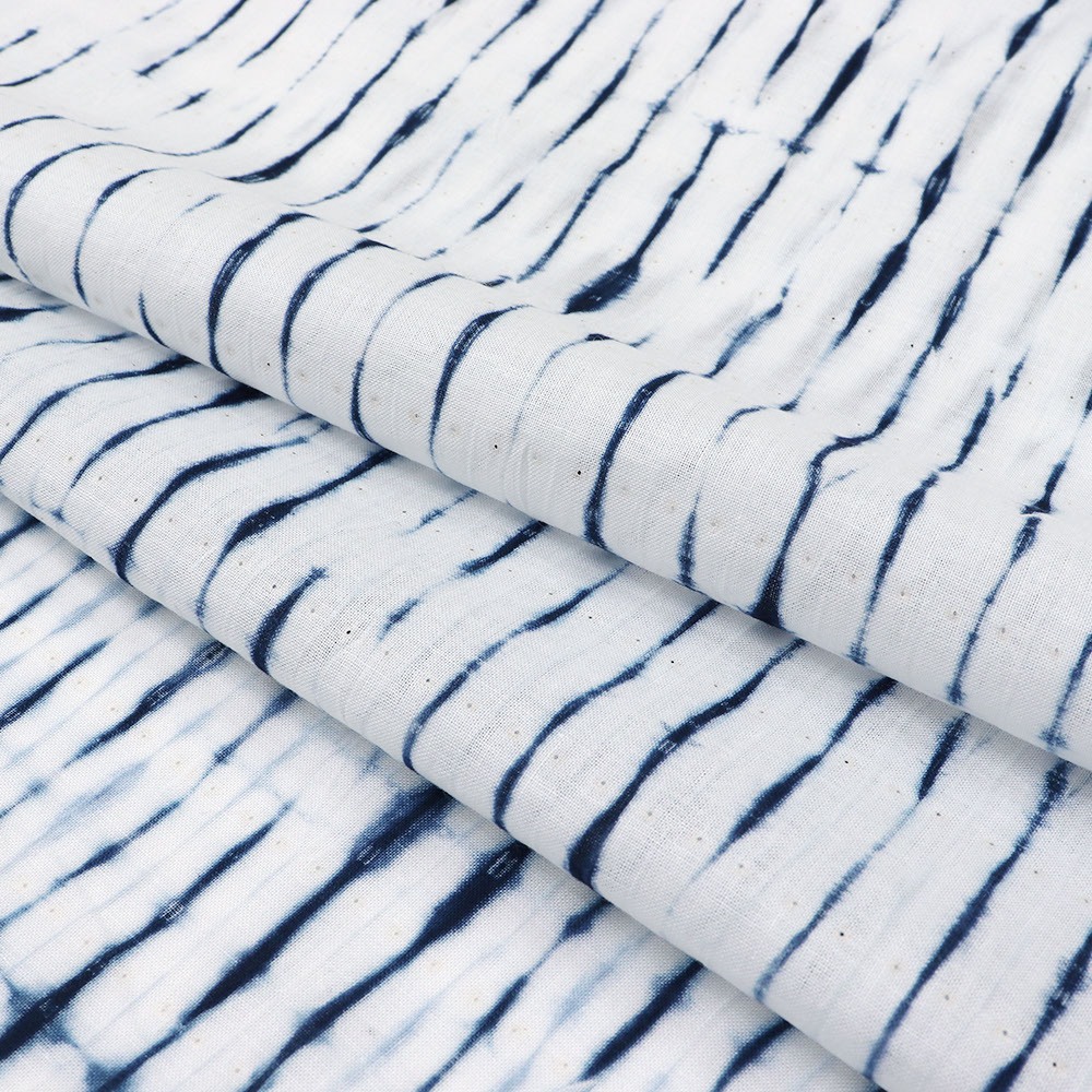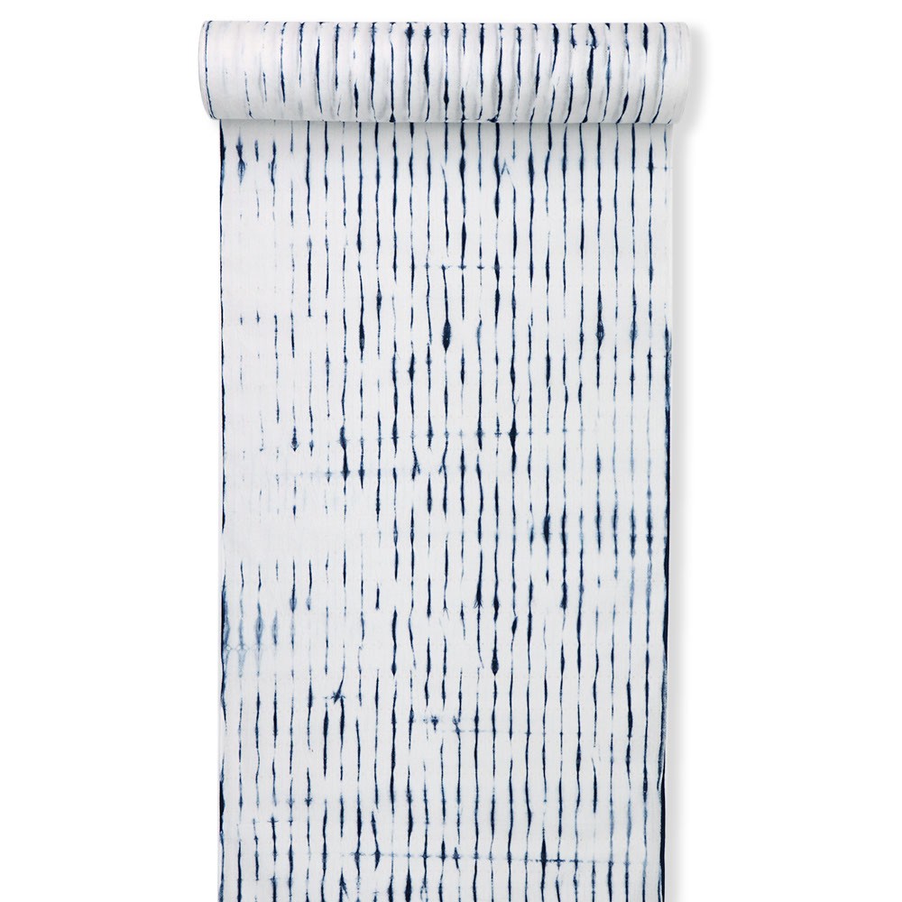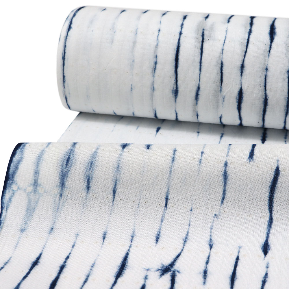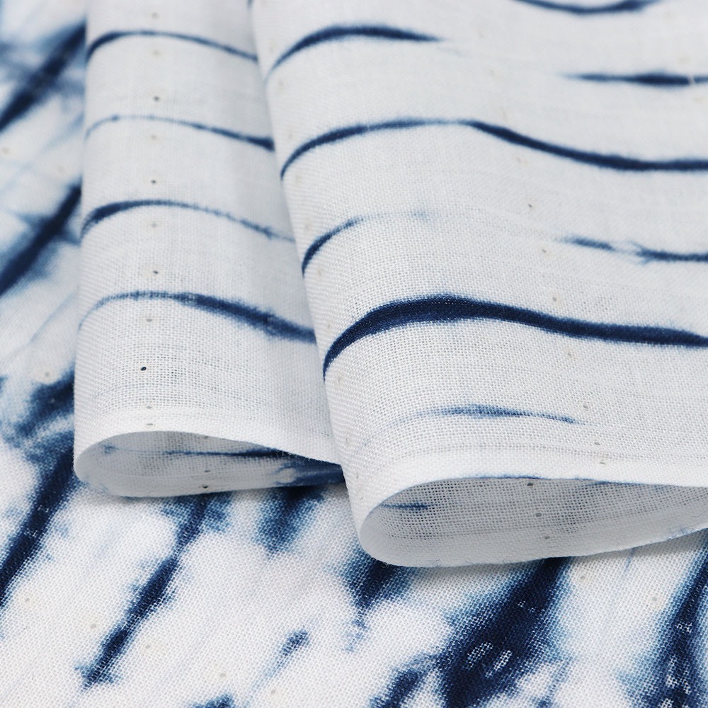 白地に紺色で杢目絞りを施した一枚。スッキリとした染め柄と、清涼感ある配色で爽やかな着姿を演出します。