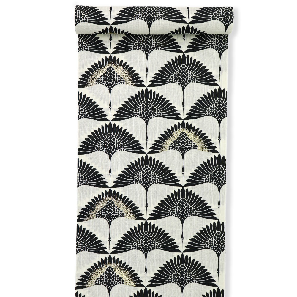 翼を広げた鶴を紋様に落とし込んだ『飛翔』。所々に散りばめられた金彩の輝きが、デザインに光のコントラストを与え、着姿をさらに華やかに。色数を抑えてシンプルに、差し色を足してもっと個性的に…とコーディネートを考える時間も楽しくなりますね。