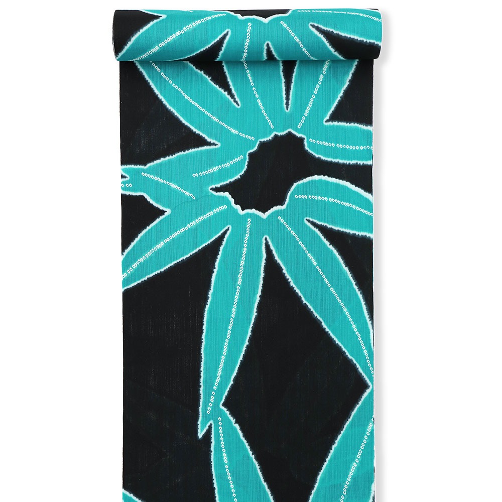 笹の葉を大胆に配した『大笹』。鮮やかな緑色に絞りのような模様を加え、大人な雰囲気を醸し出す粋な一枚に。色数を抑えてシンプルに、差し色を足してもっと個性的に…とコーディネートを考える時間も楽しくなりますね。