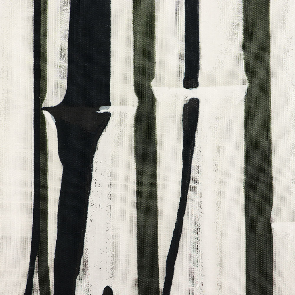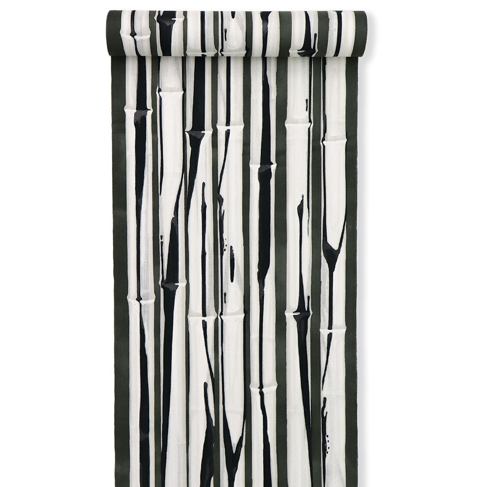 『白竹』の名の通り、まっすぐ伸びる白竹を描いた一枚。墨黒色や深緑色の妙はもちろん、竹の節を表現する箔の使い方にもぜひご注目ください。色数を抑えてシンプルに、差し色を足してもっと個性的に…とコーディネートを考える時間も楽しくなりますね。