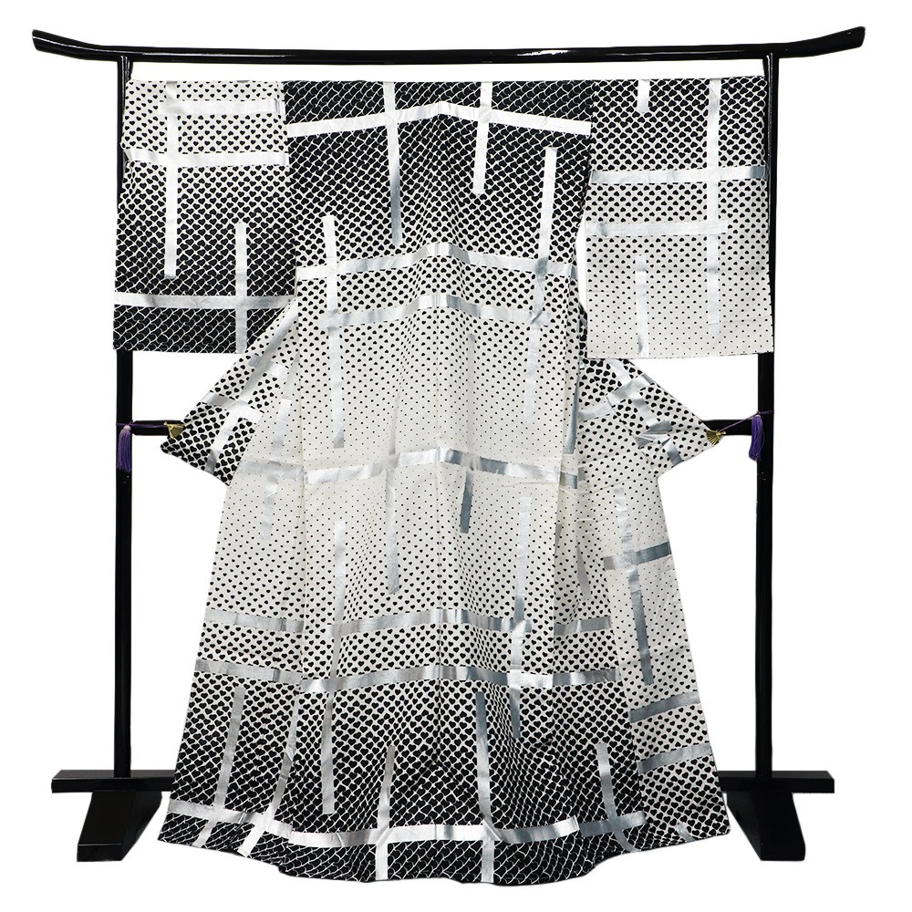 たくさんのハートでクローバーを表現し、誉田屋の定番である破れ格子を上から配したレイヤー感のある一枚。白×黒のカラーリングに、クローバーのモノクログラデーションが絵羽全体を彩るハイセンスデザインです。トラディショナルかつ型に嵌らない唯一無二な夏の着姿を演出してくれます。