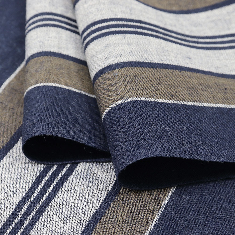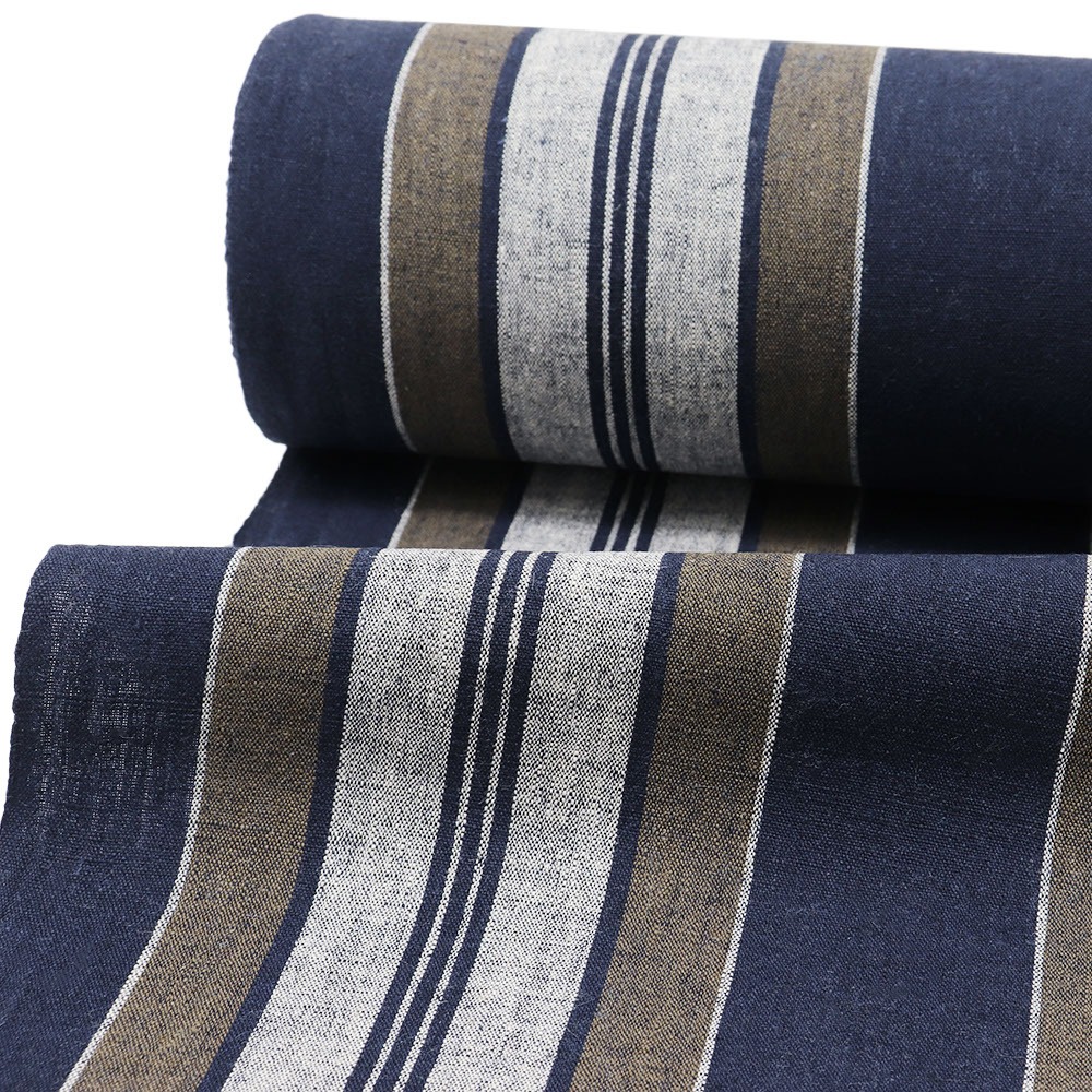 綿と麻を混紡した糸を使用して織り上げられた一本です。伊勢木綿伝統の柄行はそのままに、綿麻の風合いで、風が通るようなサラリと軽やかな着心地に。幅広いシーズンでカジュアルシーンに活躍するアイテムです。