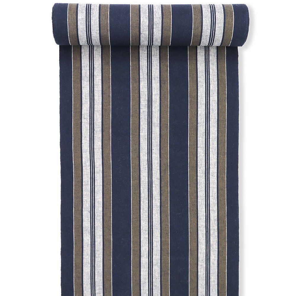 落ち着いた色合いながら大胆な両子持縞が、定番の縞模様にモダンな雰囲気をプラス。色柄の組み合わせが同じものは、ほとんどありません。