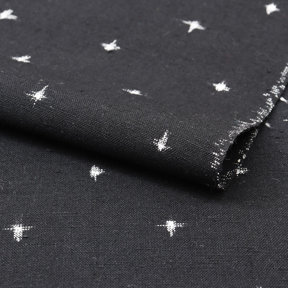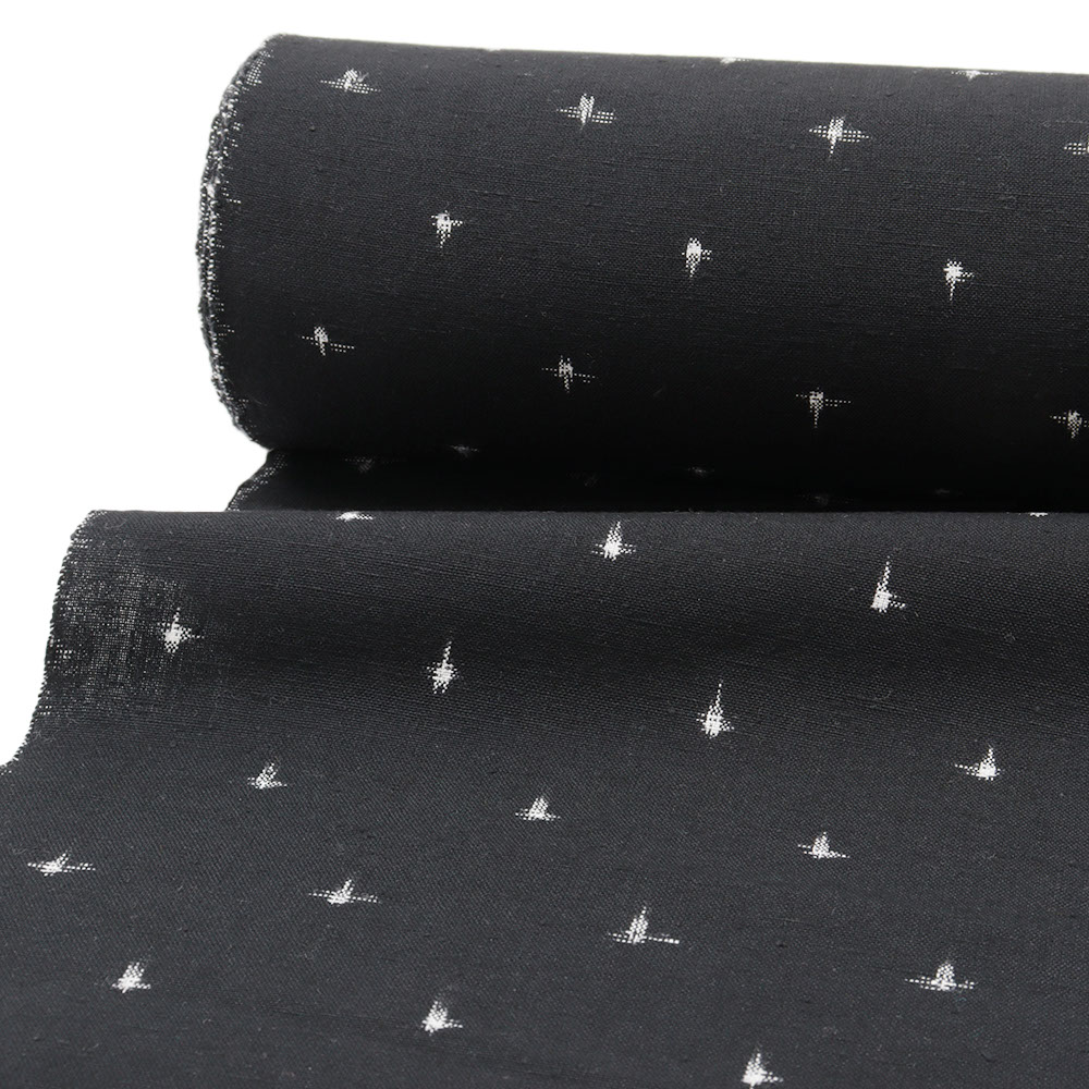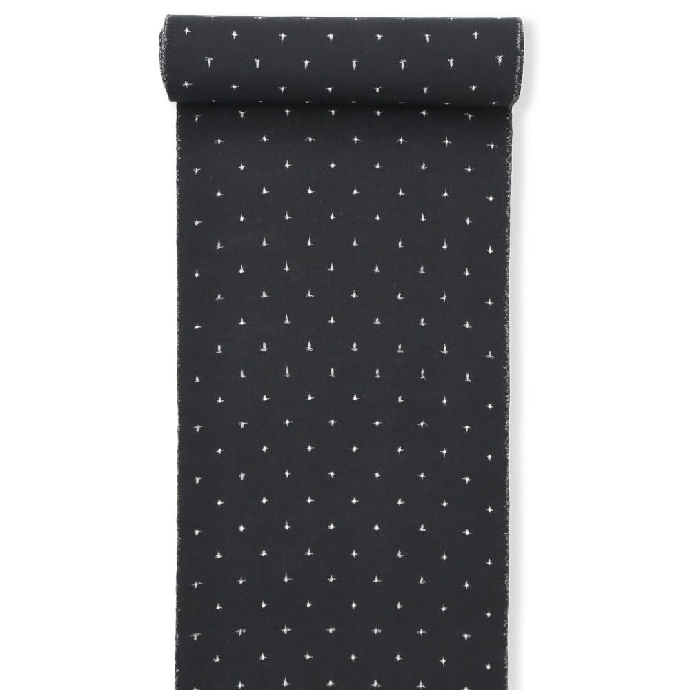 いくつもの工程を経て出来上がる久留米絣ならではのほっこりとした風合いと、坂田織物ならではのオリジナリティあふれる柄行きがしっくりと着姿に馴染む仕上がりです。