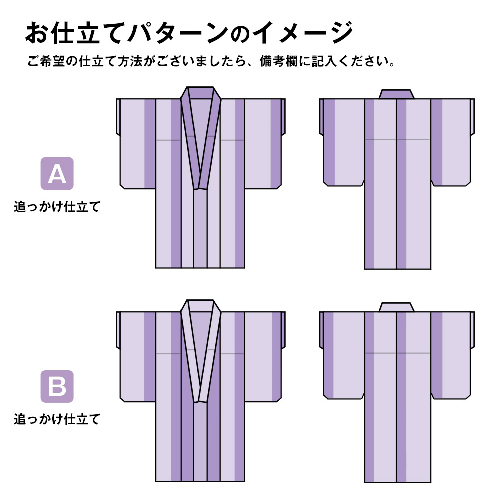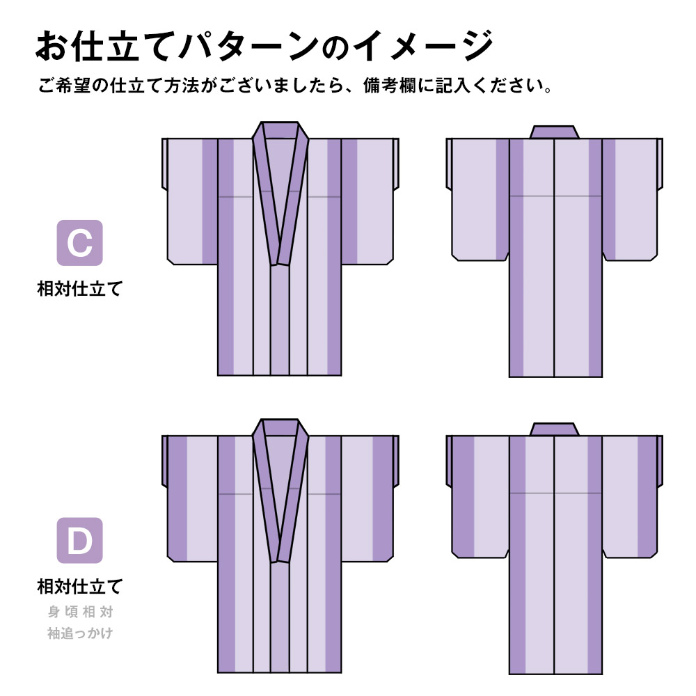 - コート・羽織の裏地はおまかせとなっておりますが、ご希望のお色目等ございましたら備考欄にてご指示ください。