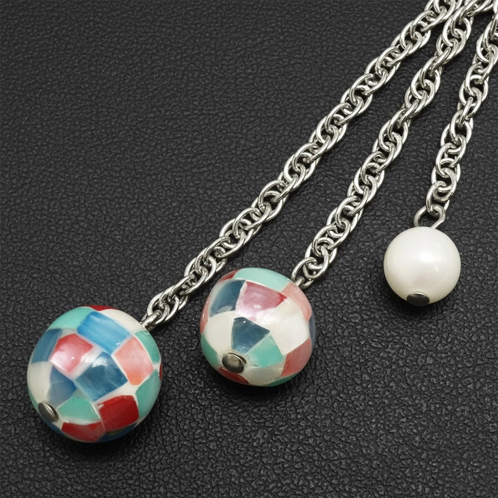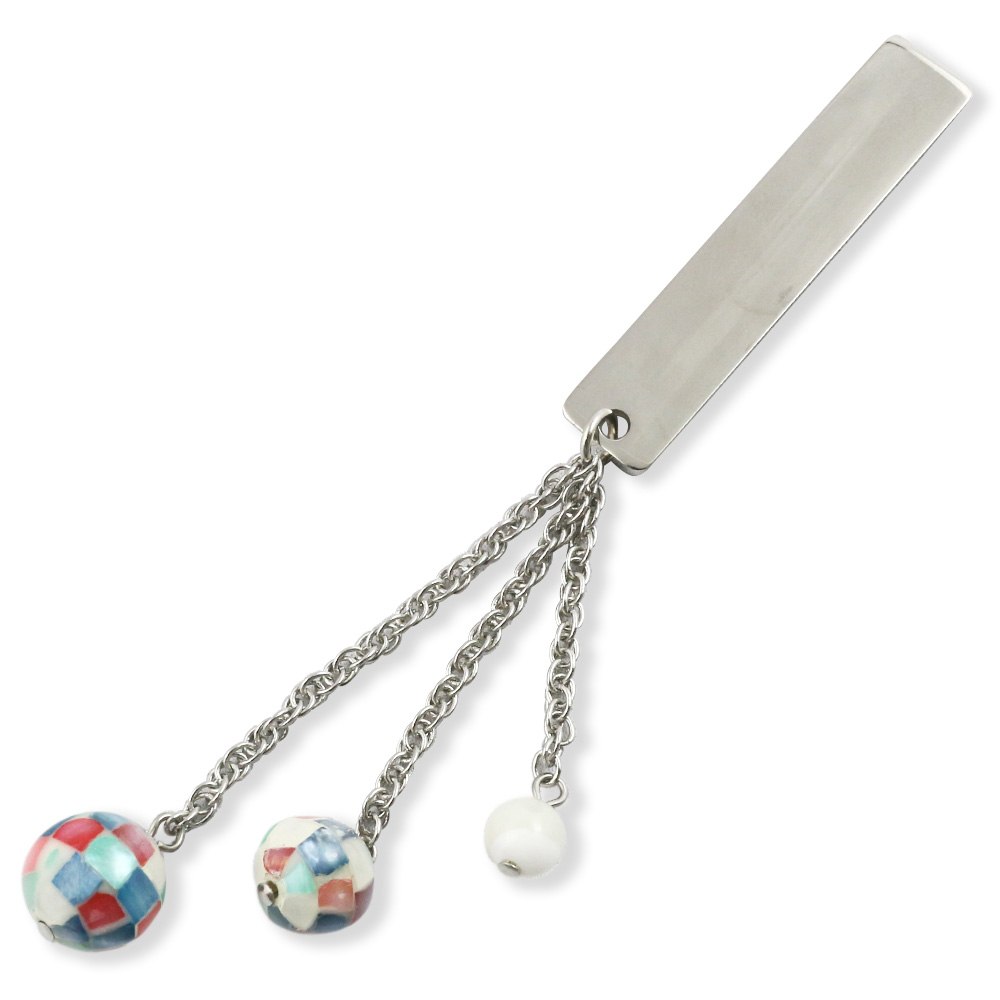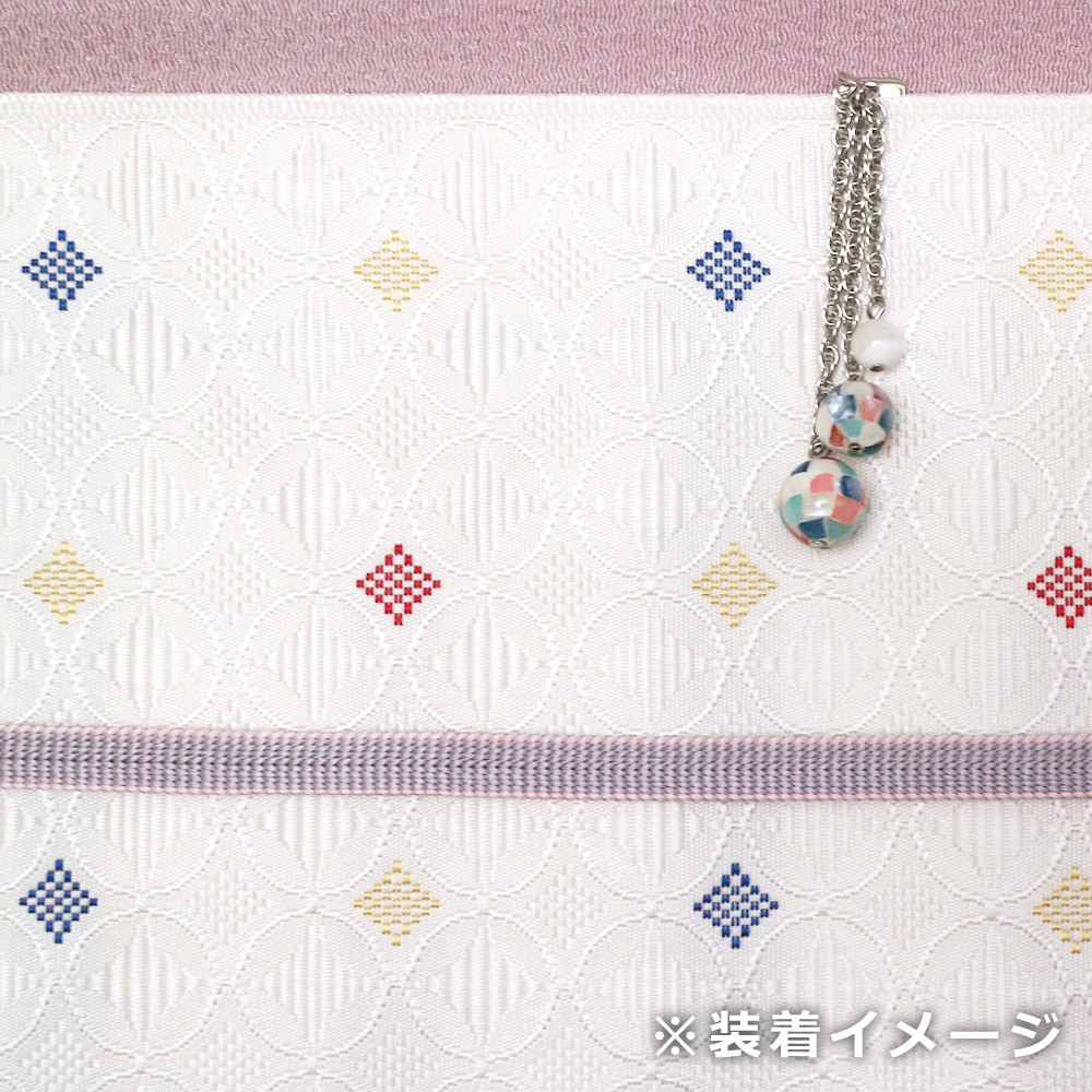 赤色や青色を中心にした3連の螺鈿の可愛らしいデザインです。帯にそっと挿せば動くたびにゆらゆらとキラキラと輝きます。小粋なアクセントとしてオシャレ使いにコーディネートをお楽しみください。
