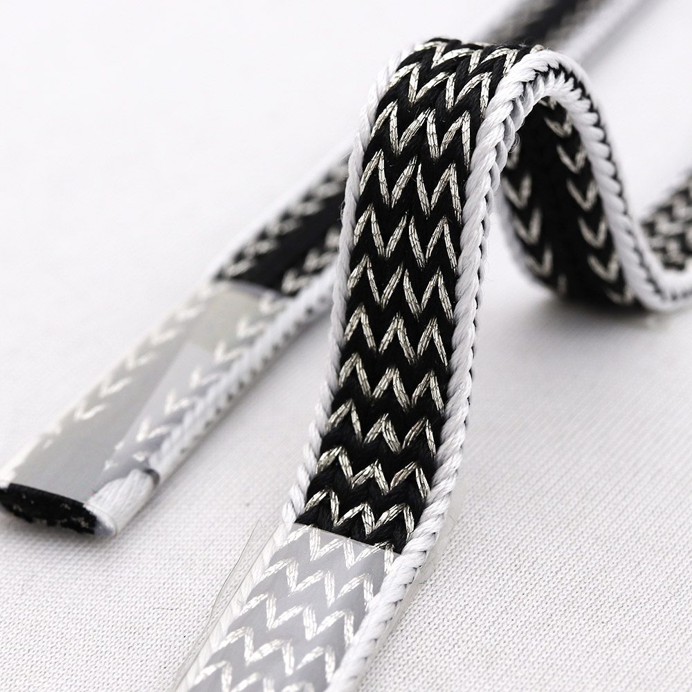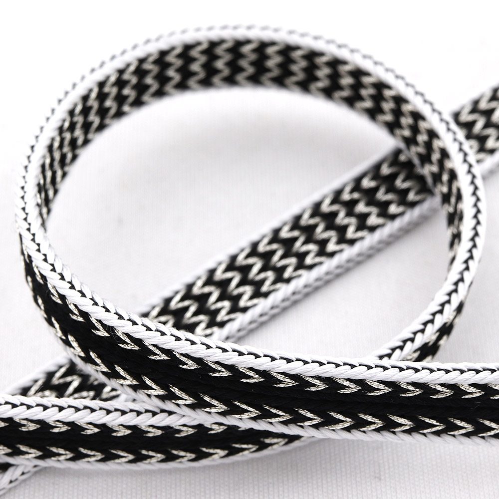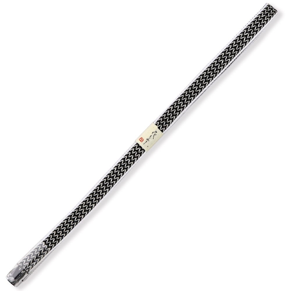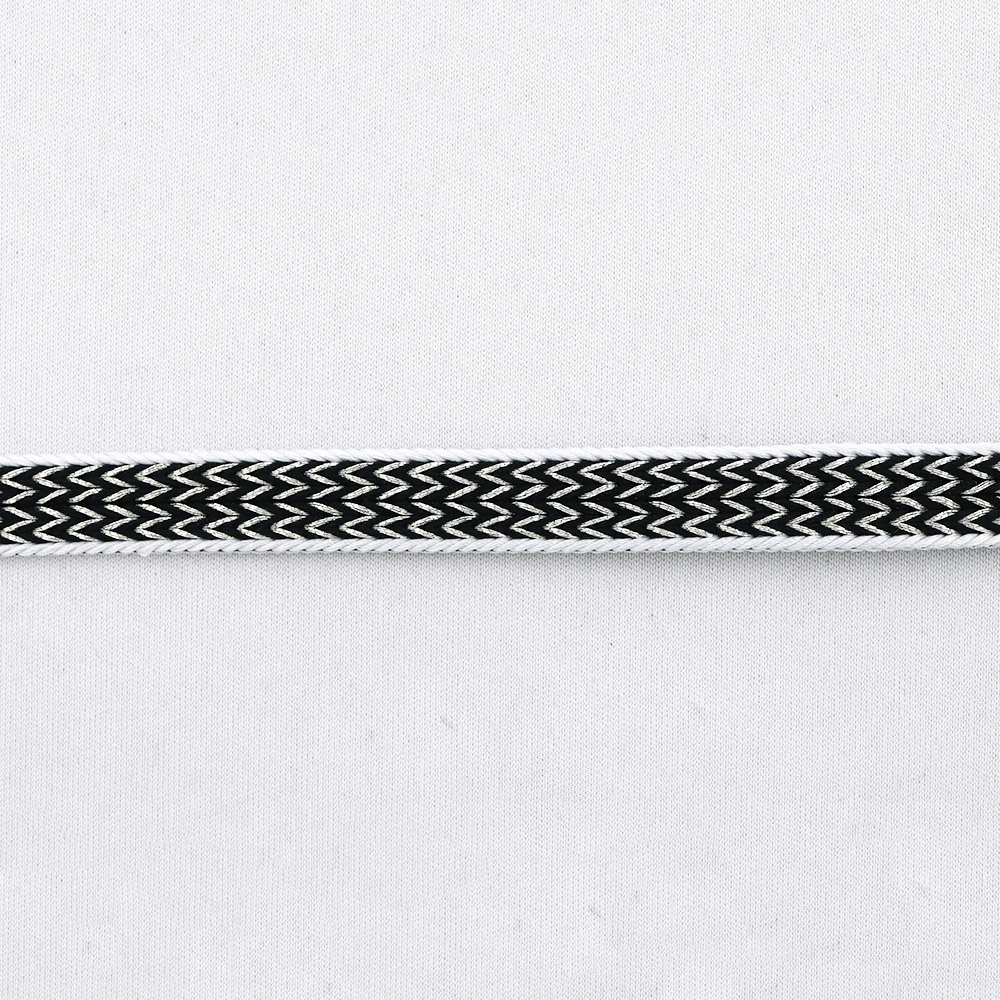 張りを持たせながらもキュッと締めやすく、凹凸が少ないので帯留も通しやすい一本。黒と白の彩度を抑えたカラーに銀糸が織り込まれ、シンプルながら華やかな印象を与えてくれます。スリムなデザインもあいまって、コーディネートを程よく引き締めてくれること間違いなし◎