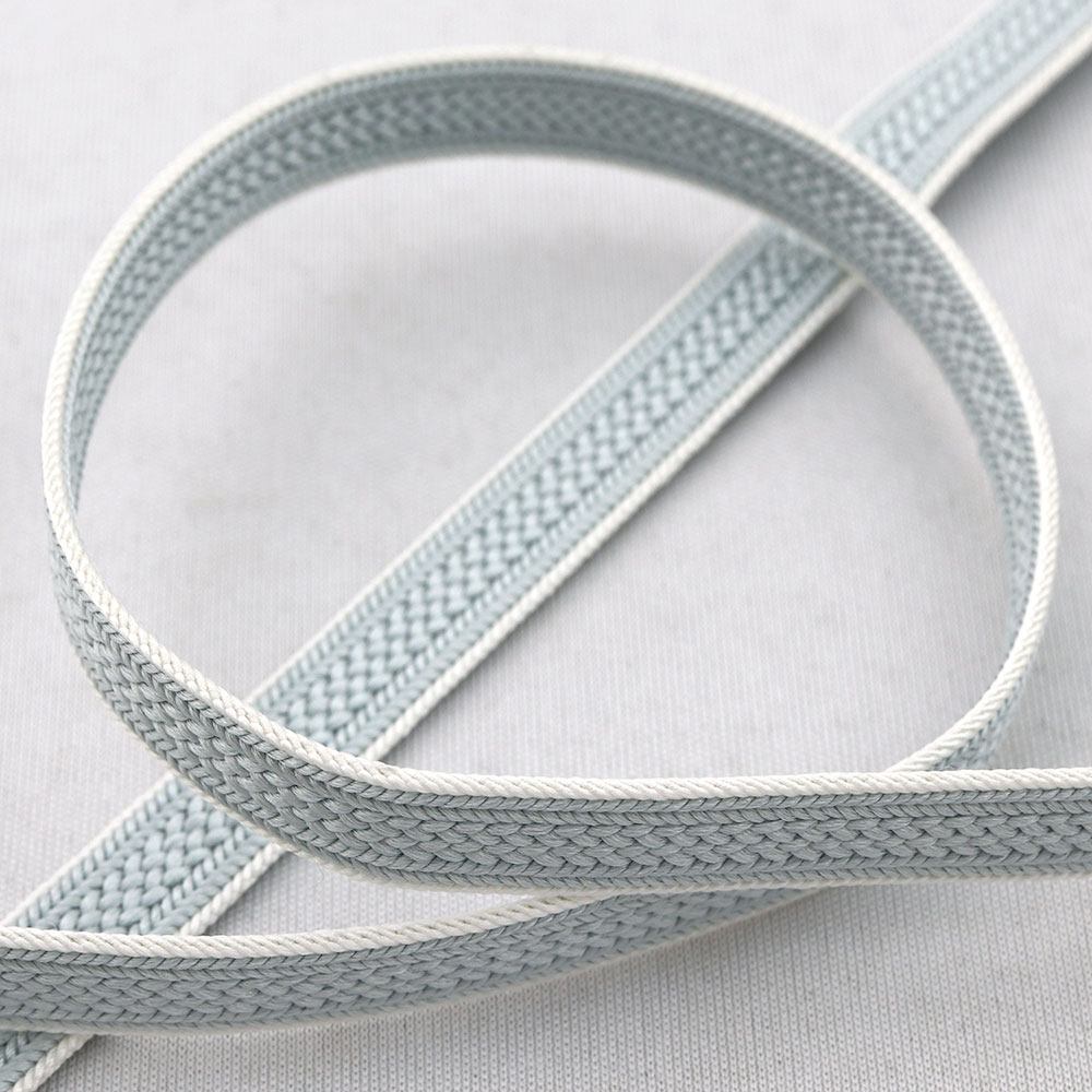 水色でふっくらとした模様が組まれた、シンプルながら華やかな仕上がりです。