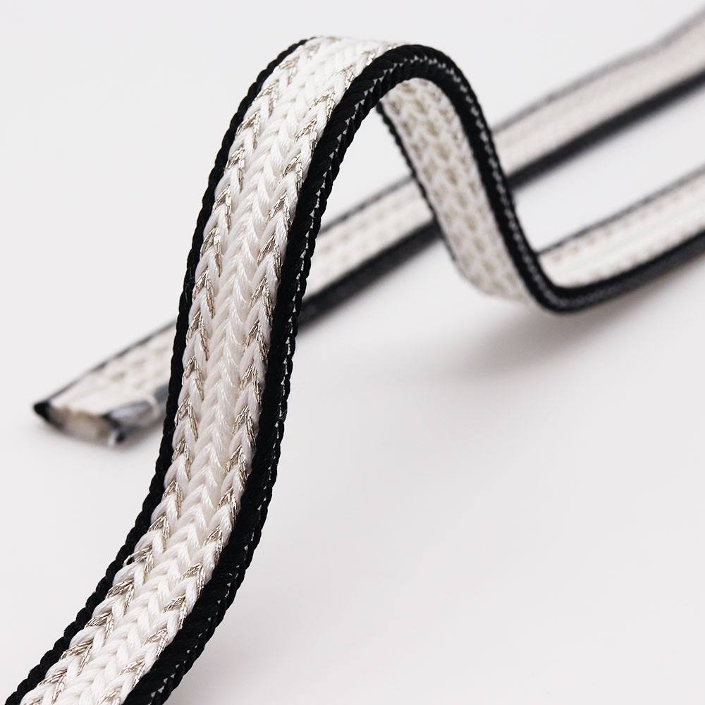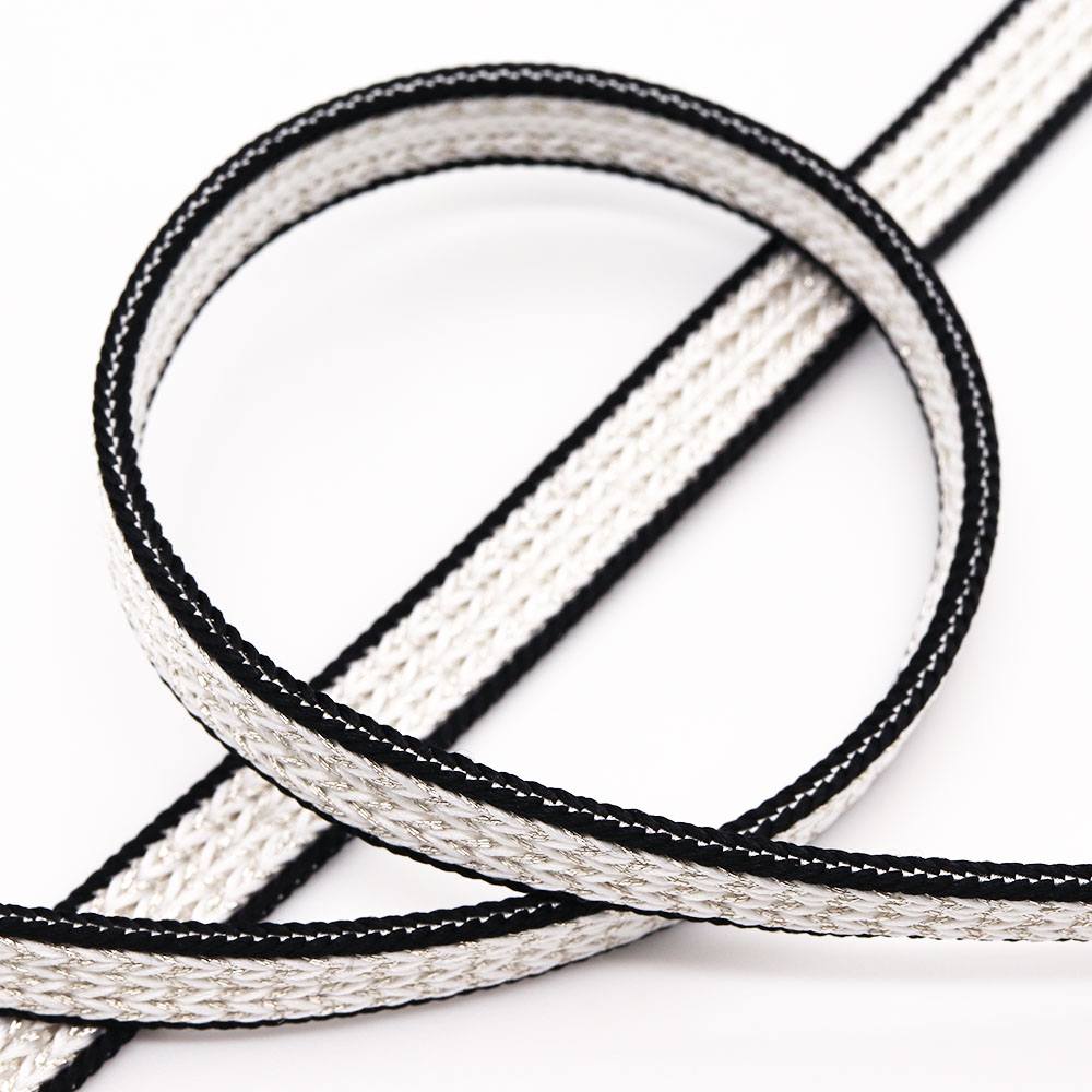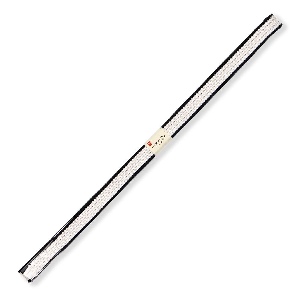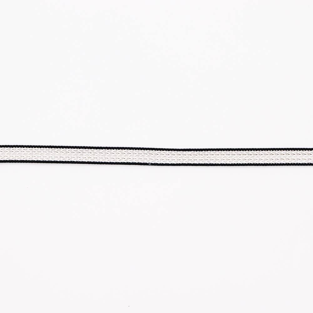 張りを持たせながらもキュッと締めやすく、凹凸が少ないので帯留も通しやすい一本。白と黒の彩度を抑えたカラーに銀糸が織り込まれ、シンプルながら華やかな印象を与えてくれます。スリムなデザインもあいまって、コーディネートを程よく引き締めてくれること間違いなし◎